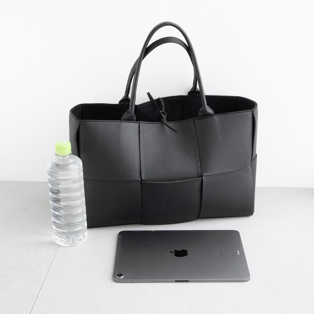 上質なマキシイントレチャートレザーで仕立てられた「アルコ Arco」は、美しいシルエットが魅力。ゆったりとしたサイズ感で、500mlペットボトルやiPad、ノートパソコンもすっきり収納できます。デイリーユースにはもちろん、通勤やビジネスシーンでも活躍するバッグです。