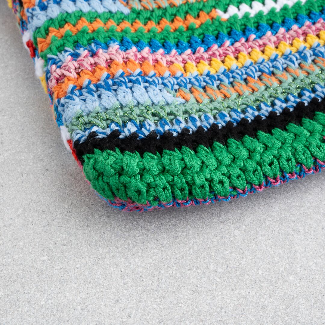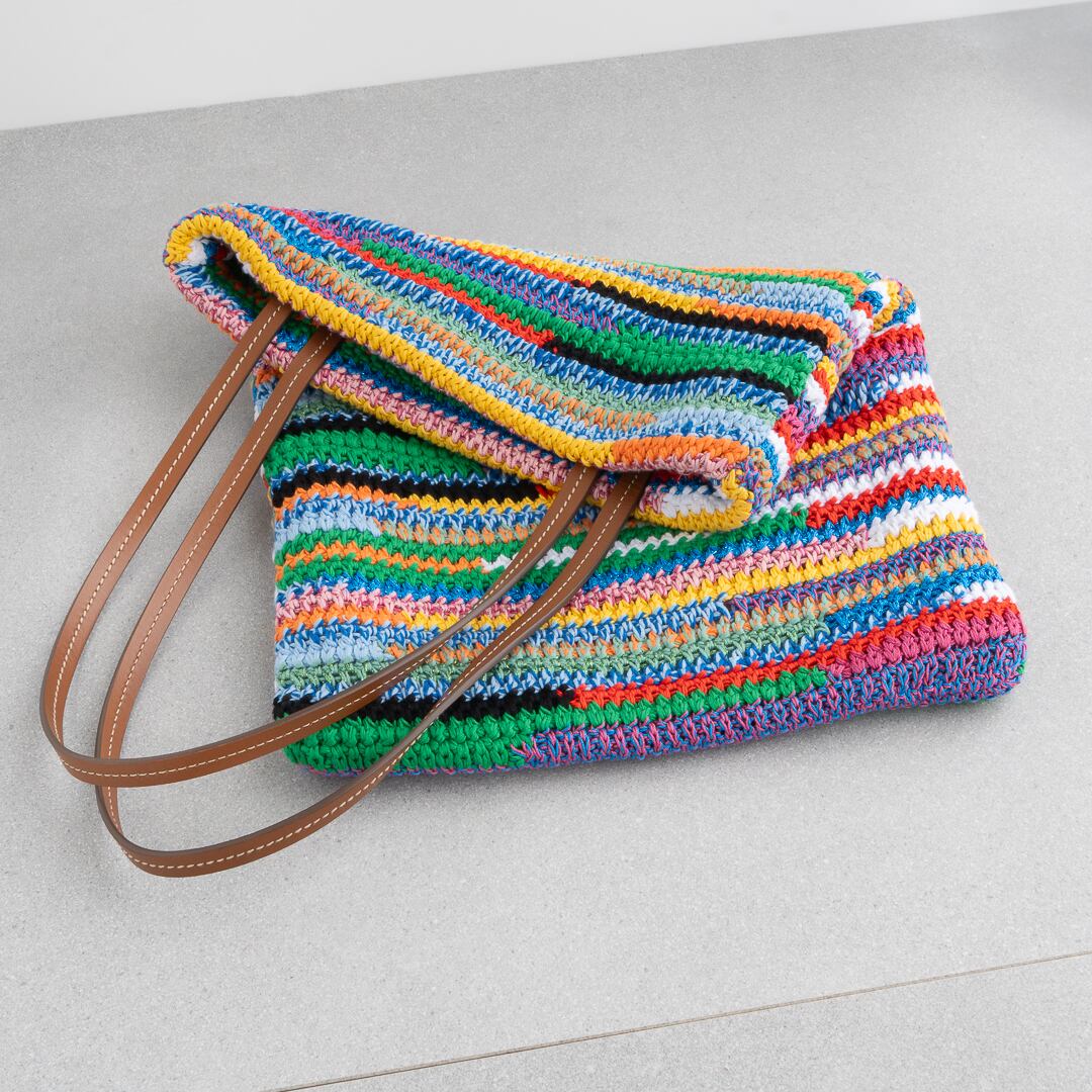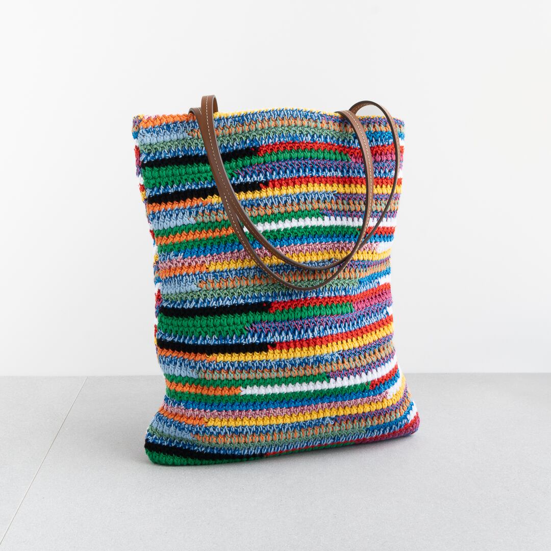 鮮やかなマルチカラーが映える、クロシェ編みのトートバッグ。