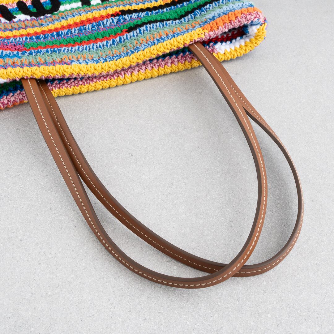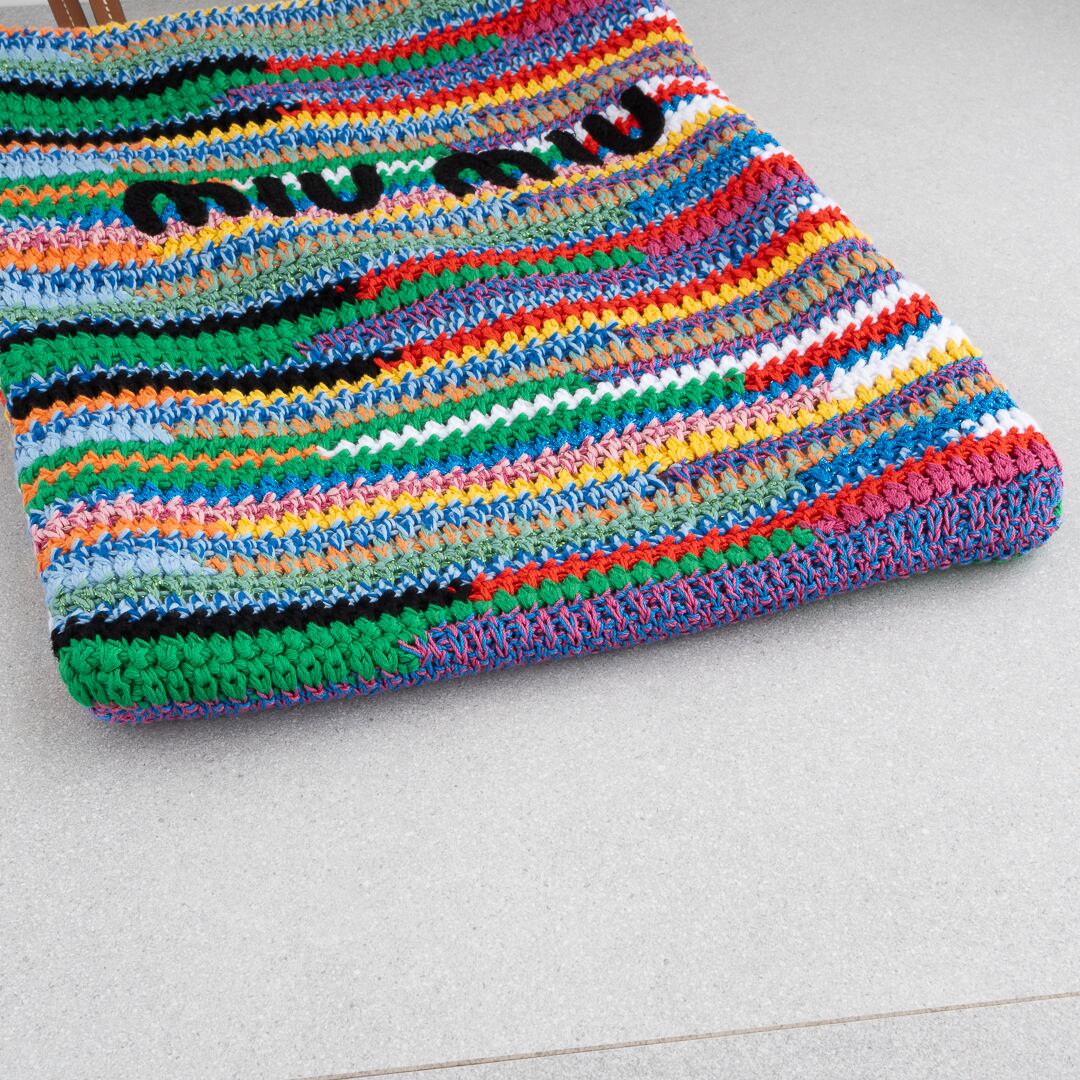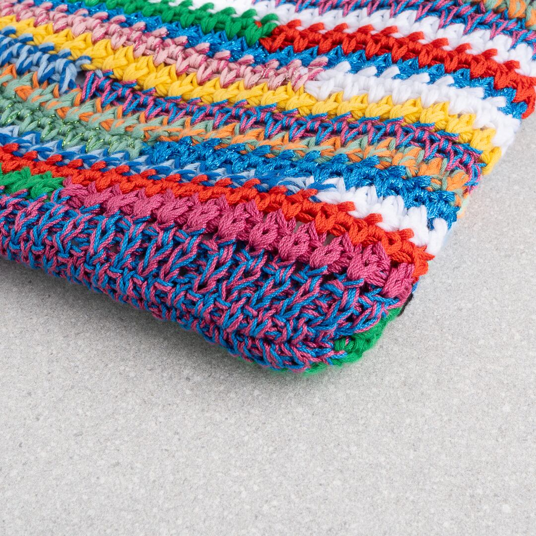 鮮やかなマルチカラーが映える、クロシェ編みのトートバッグ。