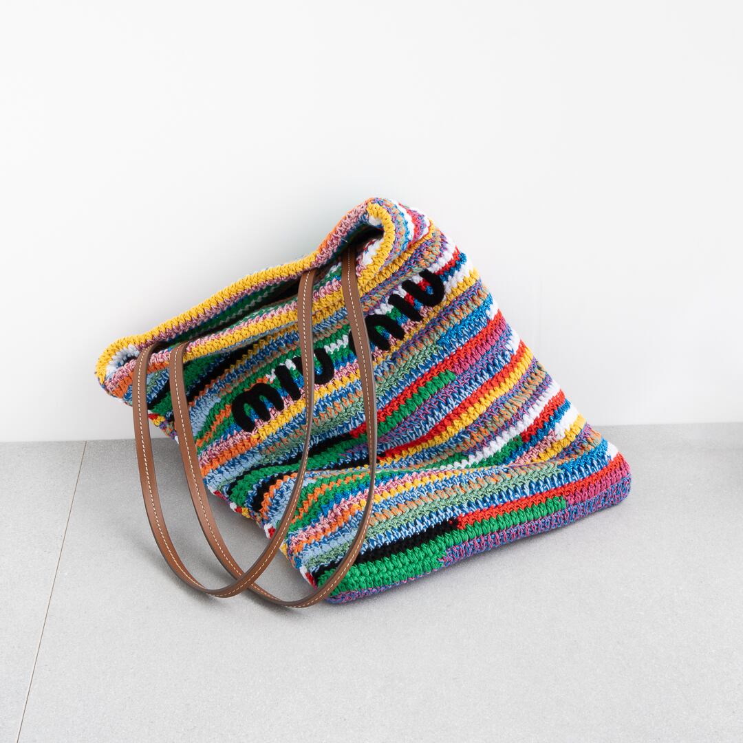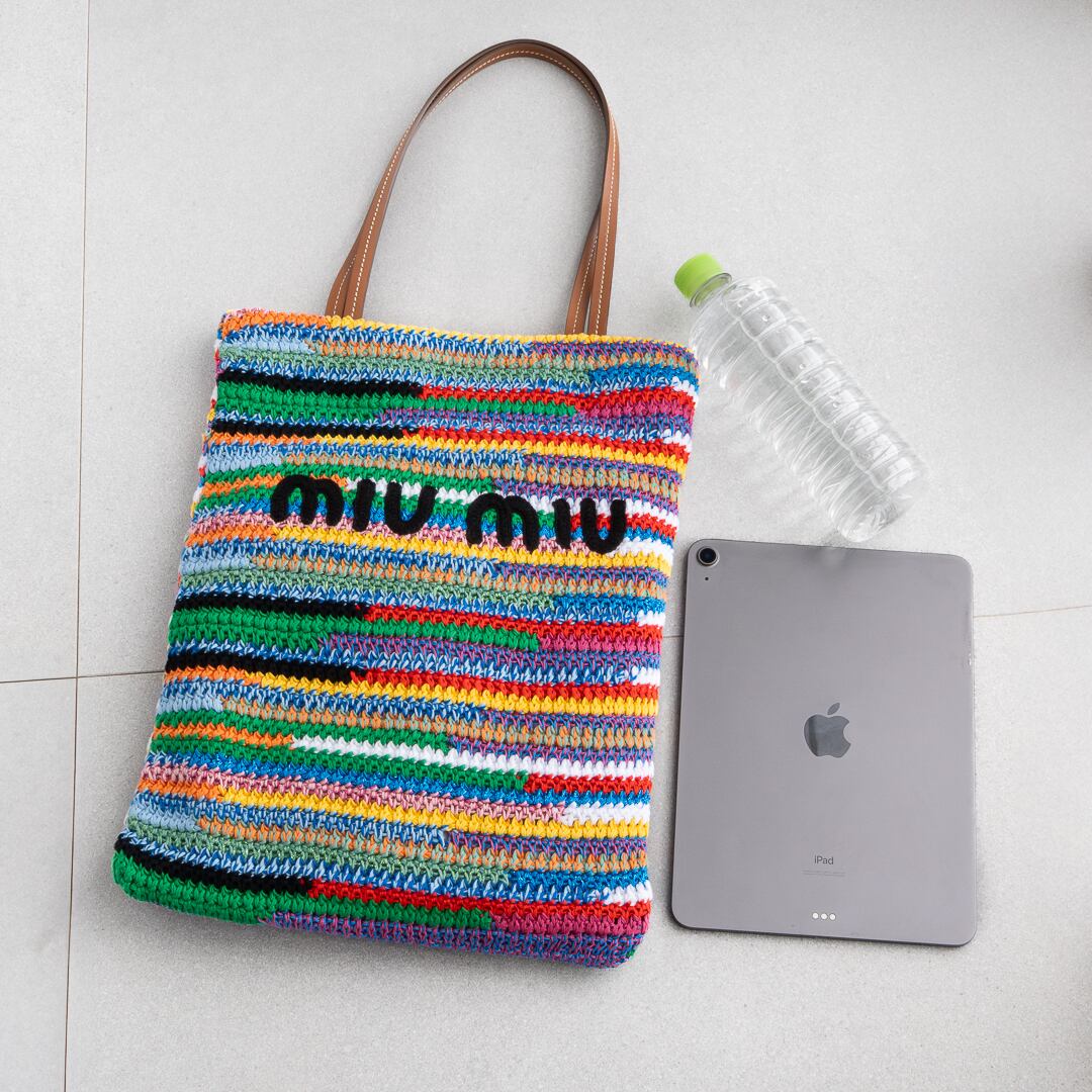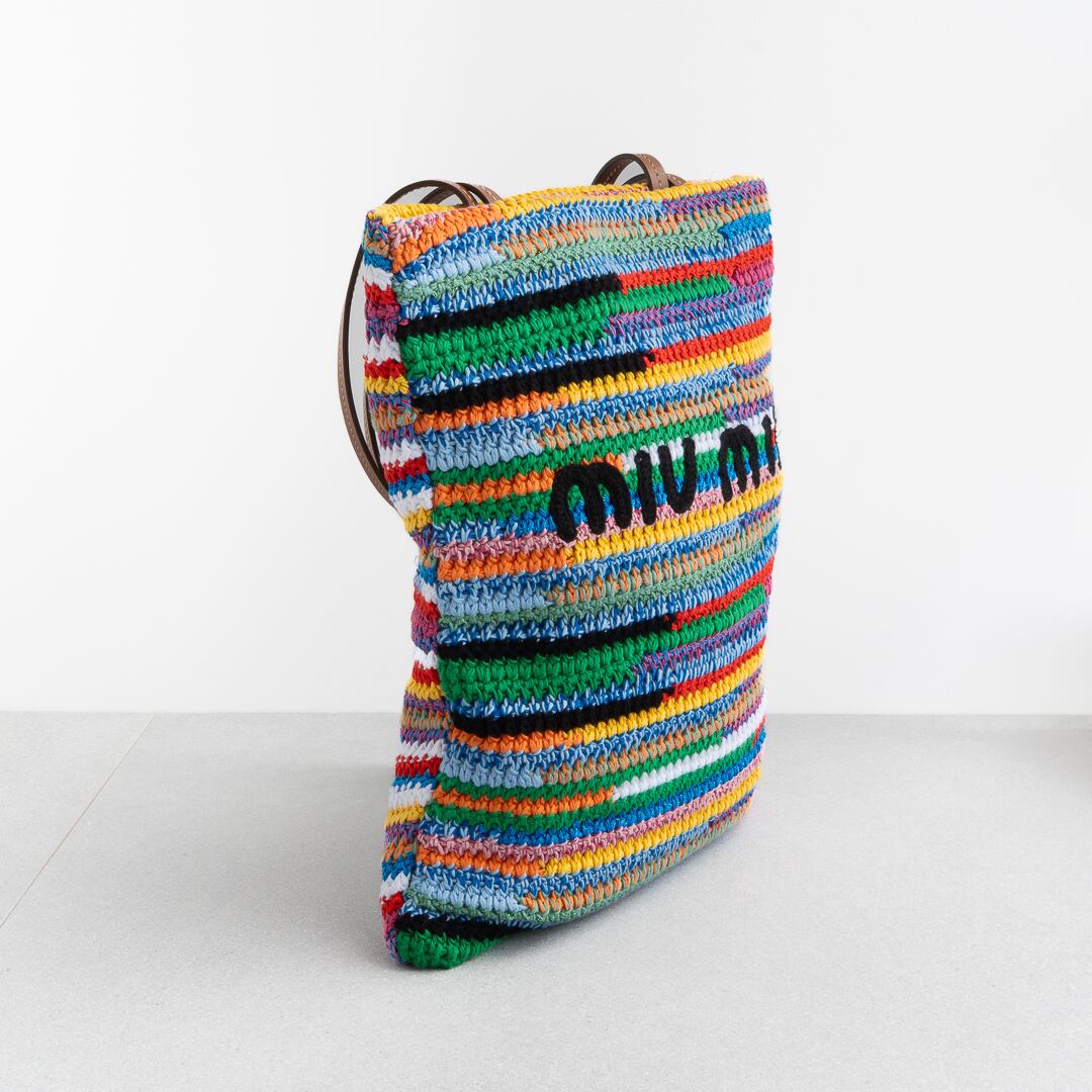 ミュウミュウ ラフィアエフェクトウーブン トートバッグ マルチカラー