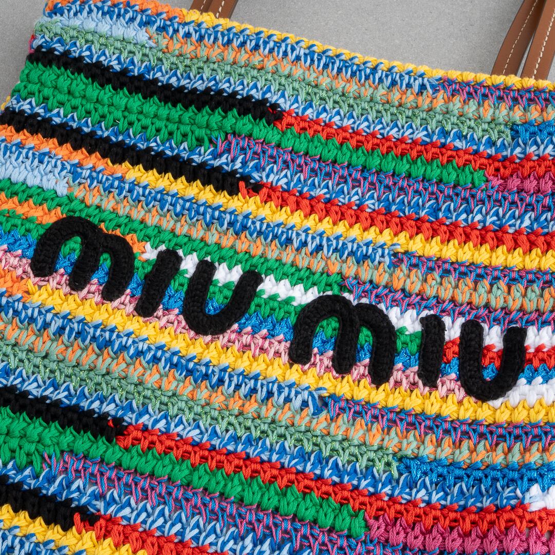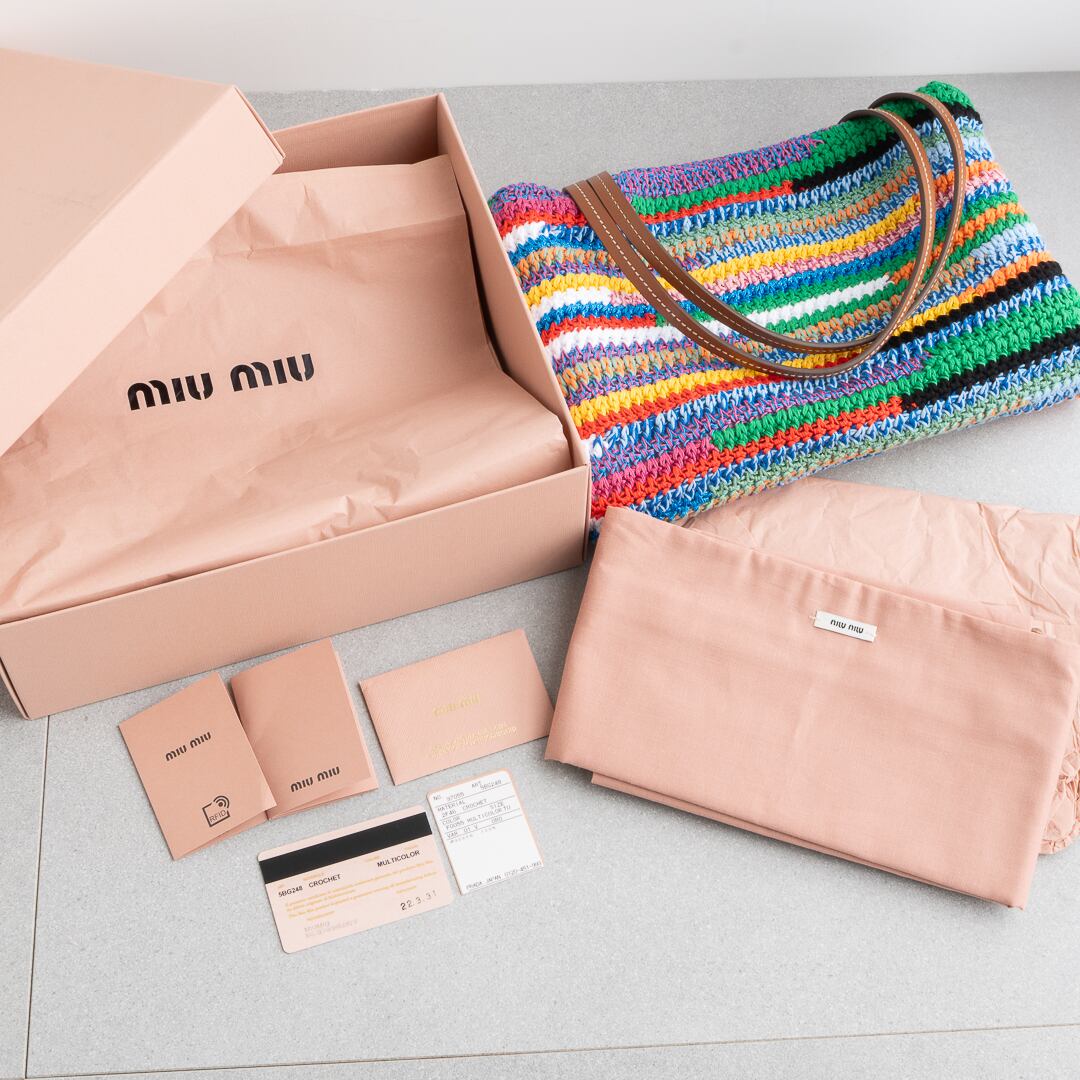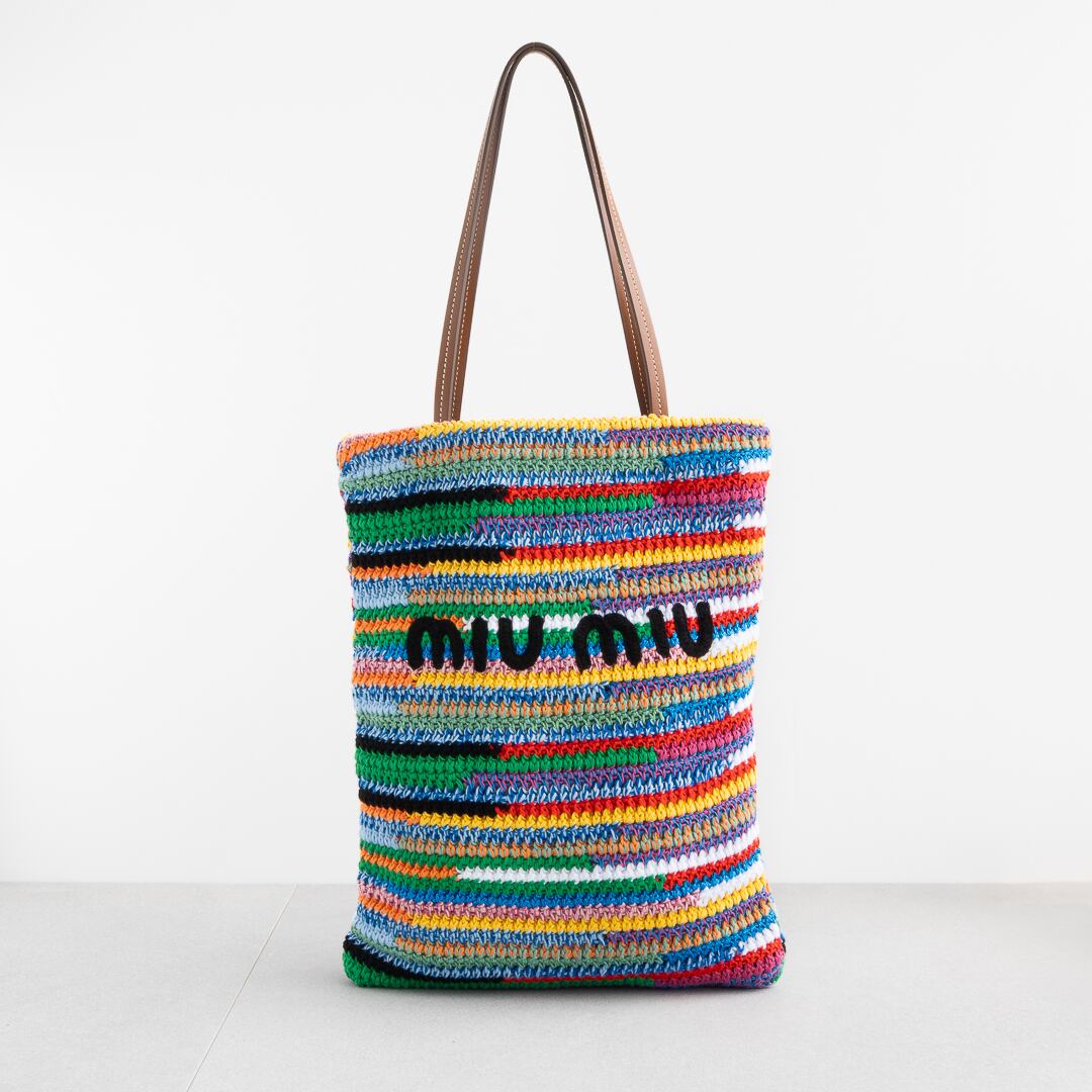 ミュウミュウ ラフィアエフェクトウーブン トートバッグ マルチカラー