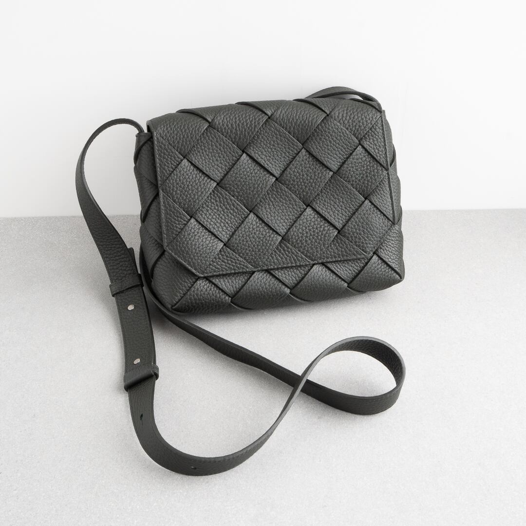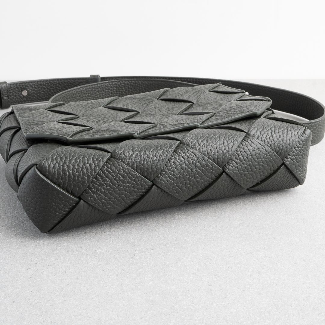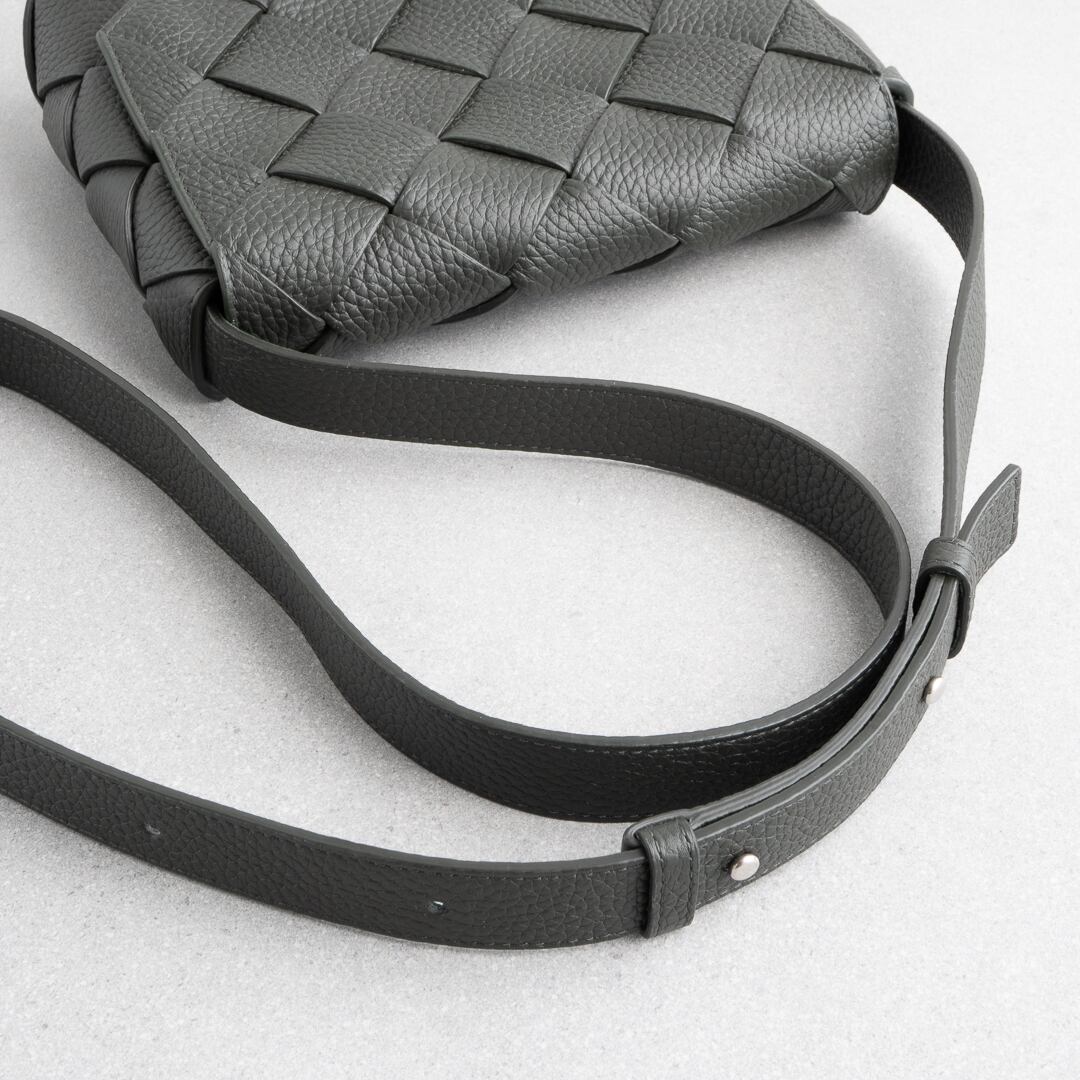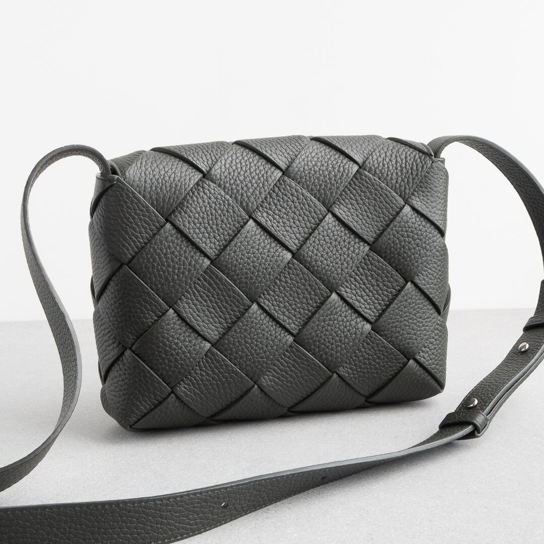 2024年に新たなラインとして登場した「ディアゴ Diago」。カセットよりも細幅でシボ感のあるしなやかなレザーを斜めに組み合わせることで、都会的で洗練された雰囲気に仕上がっています。iPhone Pro Maxや折り財布がちょうど入るサイズ感で、長財布や500mlペットボトルは収納不可。デイリーユースはもちろん、気軽なお出かけにもぴったりなバッグです。