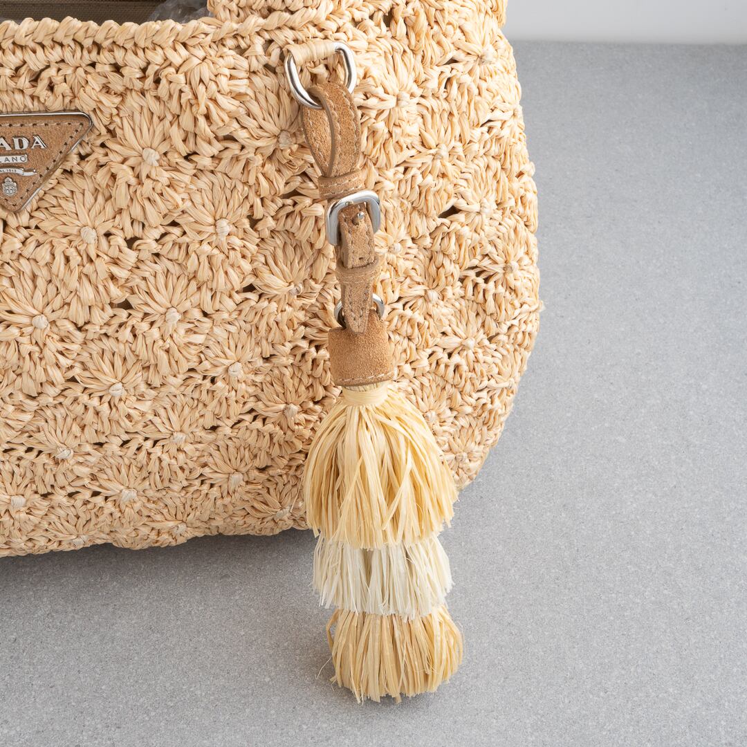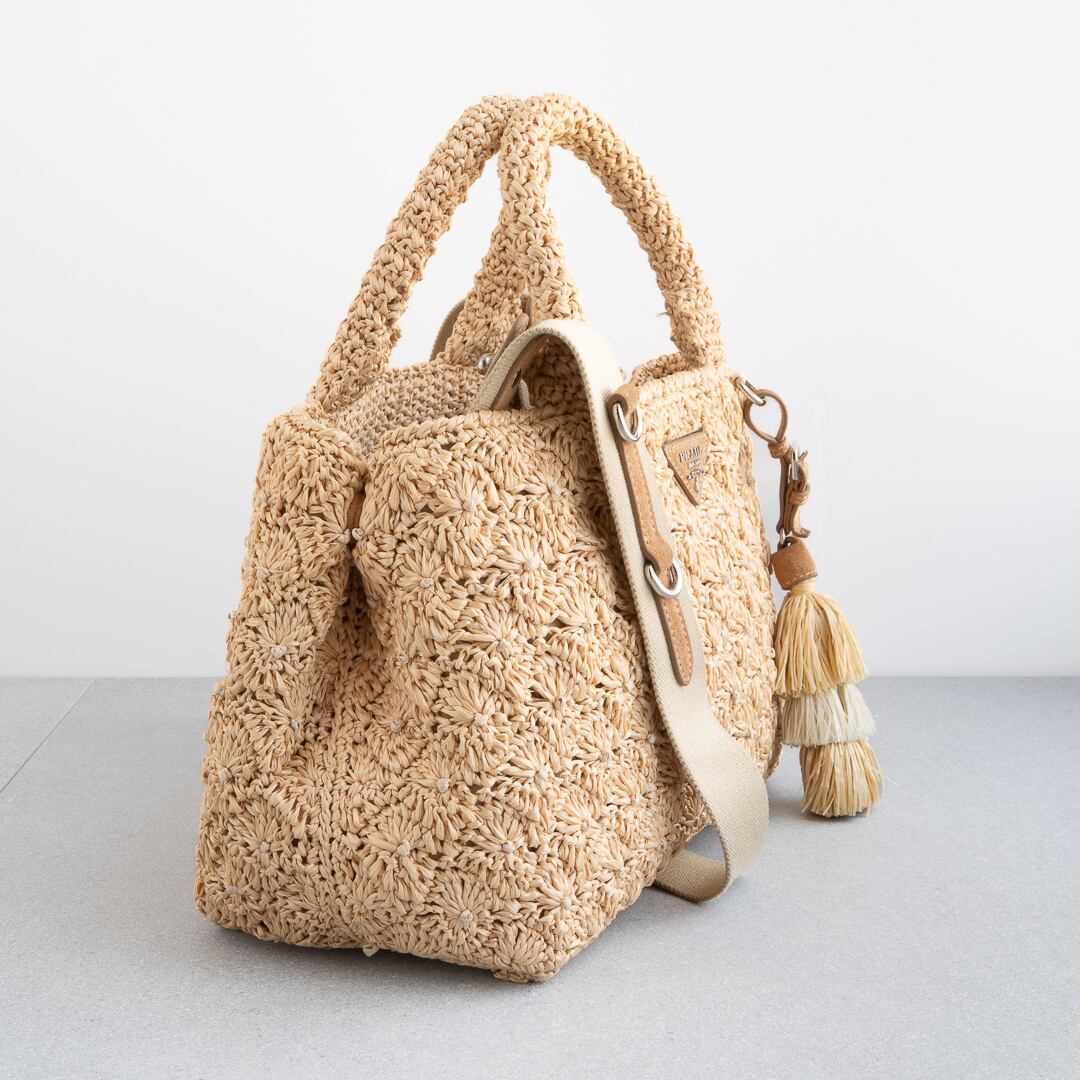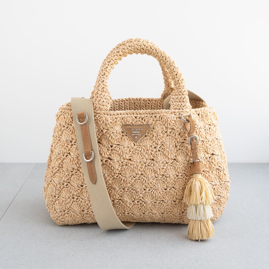 ふんわりとしたムードが魅力のプラダのラフィア カナパ ミニ。
