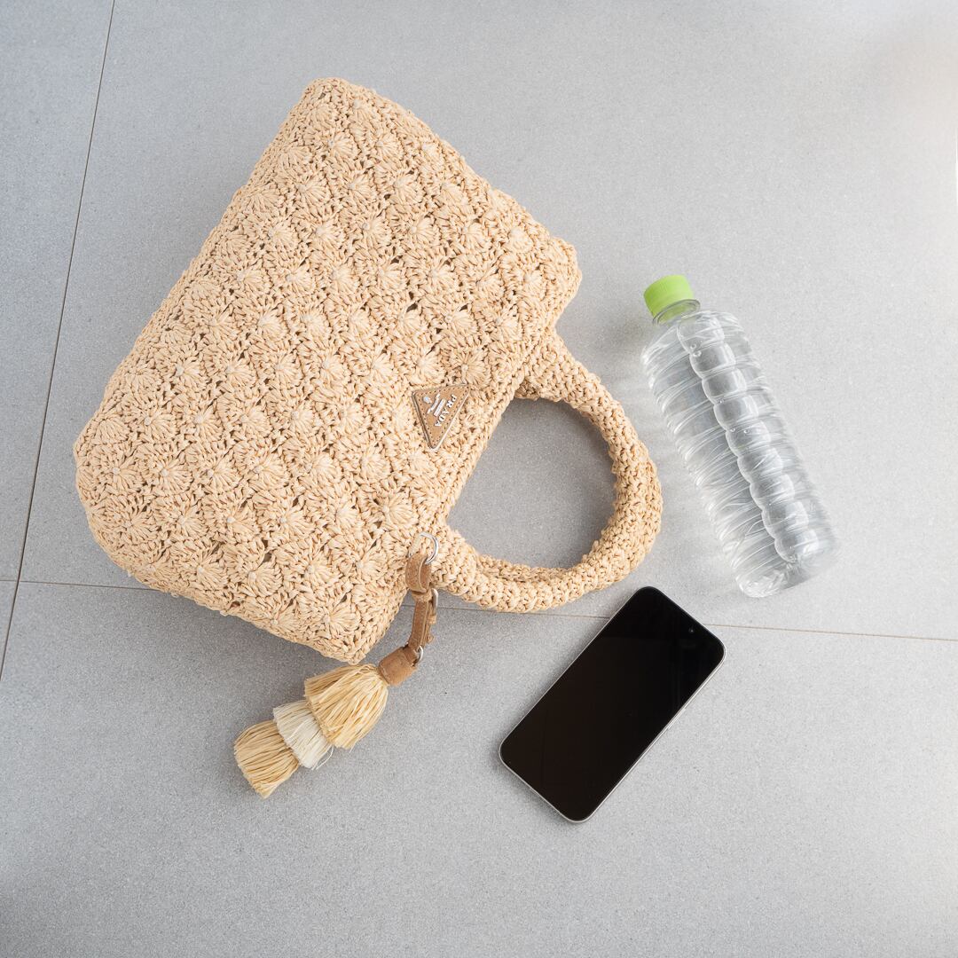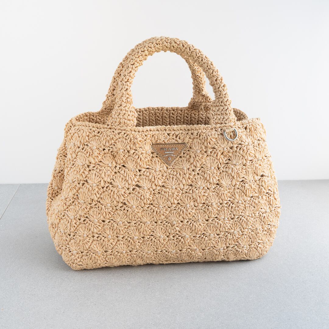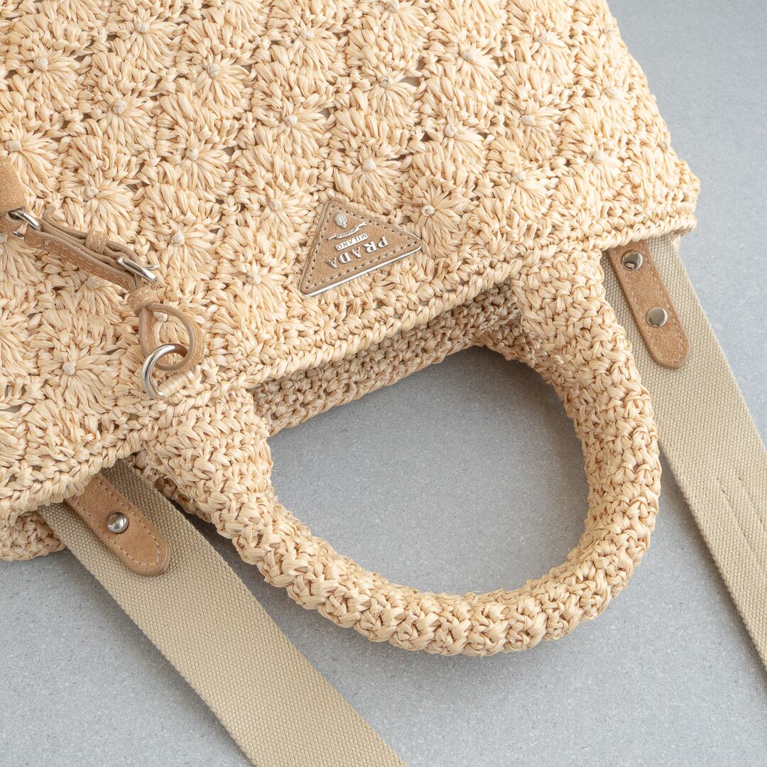 ふんわりとしたムードが魅力のプラダのラフィア カナパ ミニ。
