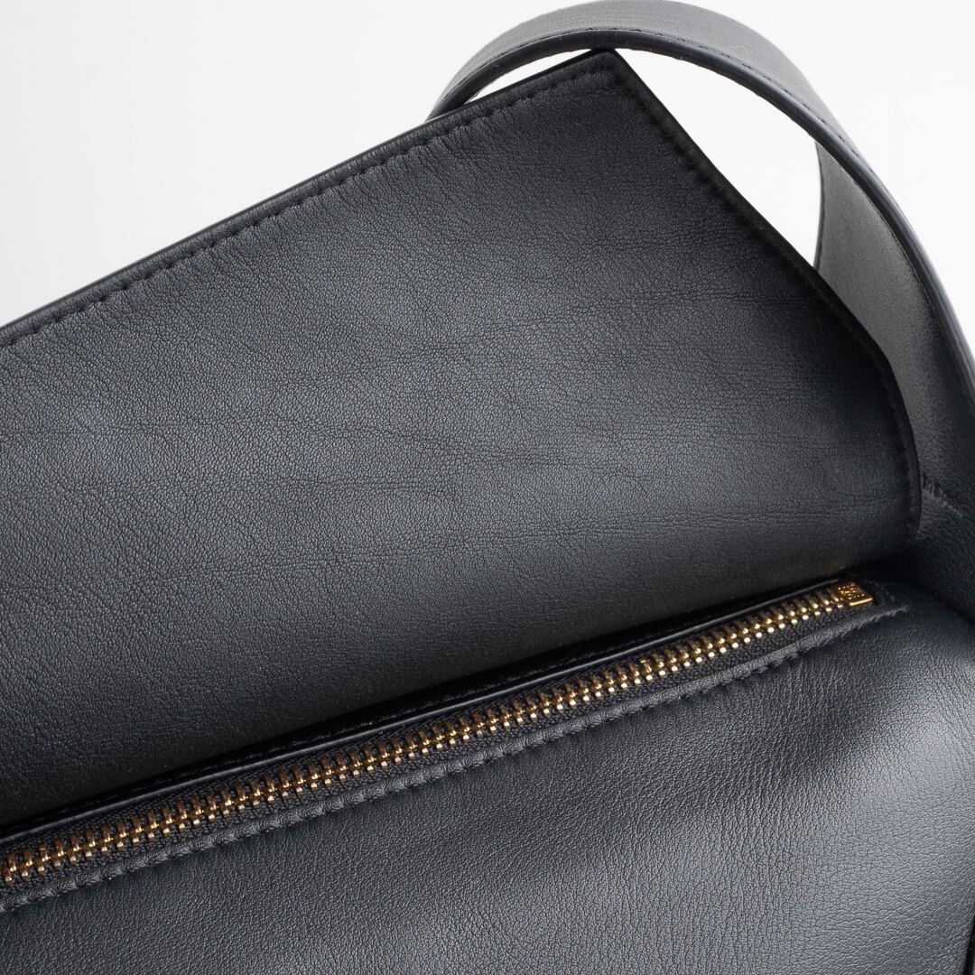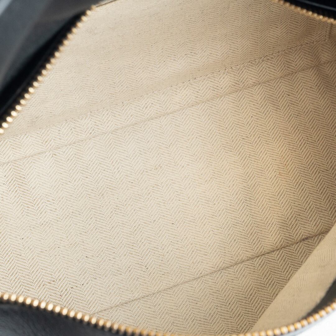 しなやかでドレープ感のあるレザーで、持ち方や角度によって表情が変わり、ラフに持つだけで雰囲気が出ます。500mlペットボトルや長財布が入るちょうどいいサイズ感で、普段使いにぴったり。肩掛けはもちろん、クラッチのように抱えて持つスタイルも抜け感がありおすすめです。ラフさと上品さを兼ね備えたアイテムです。
