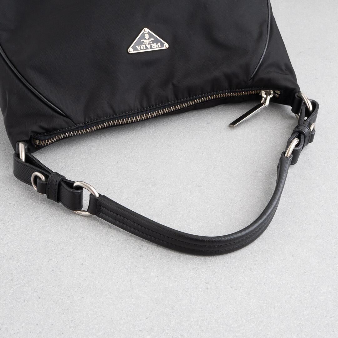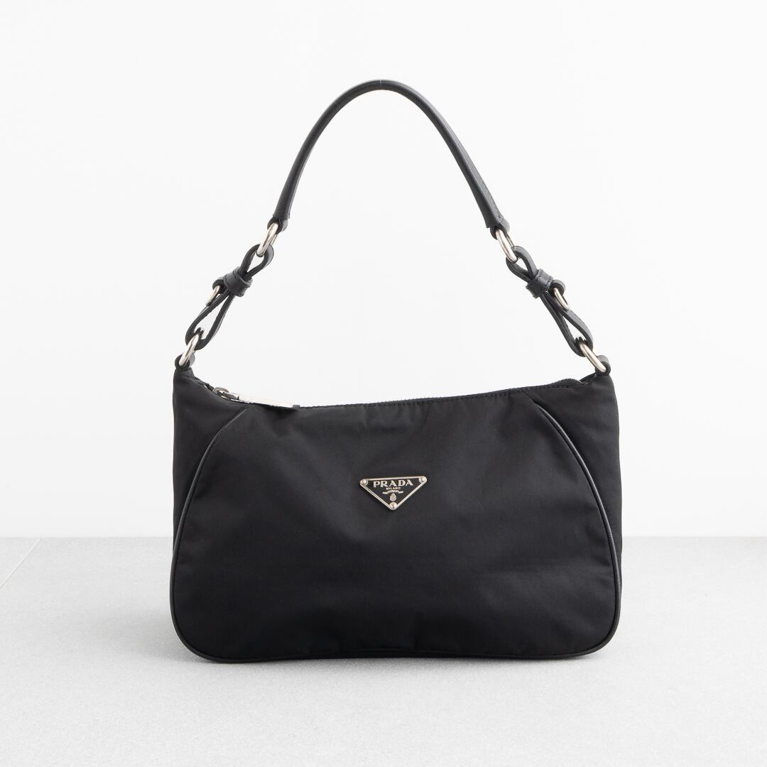 プラダ ショルダーバッグ ブラック ナイロン レザー ヴィンテージ