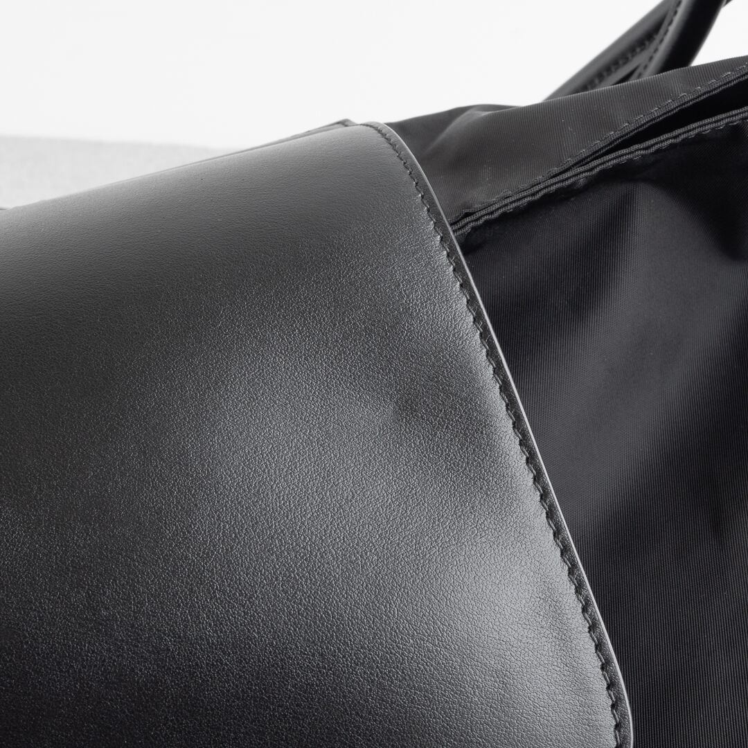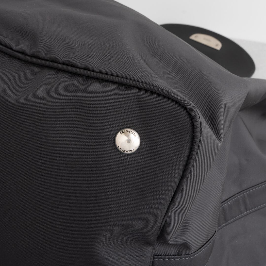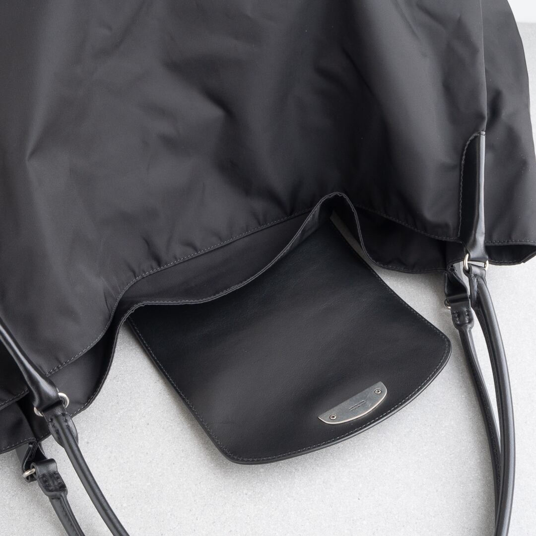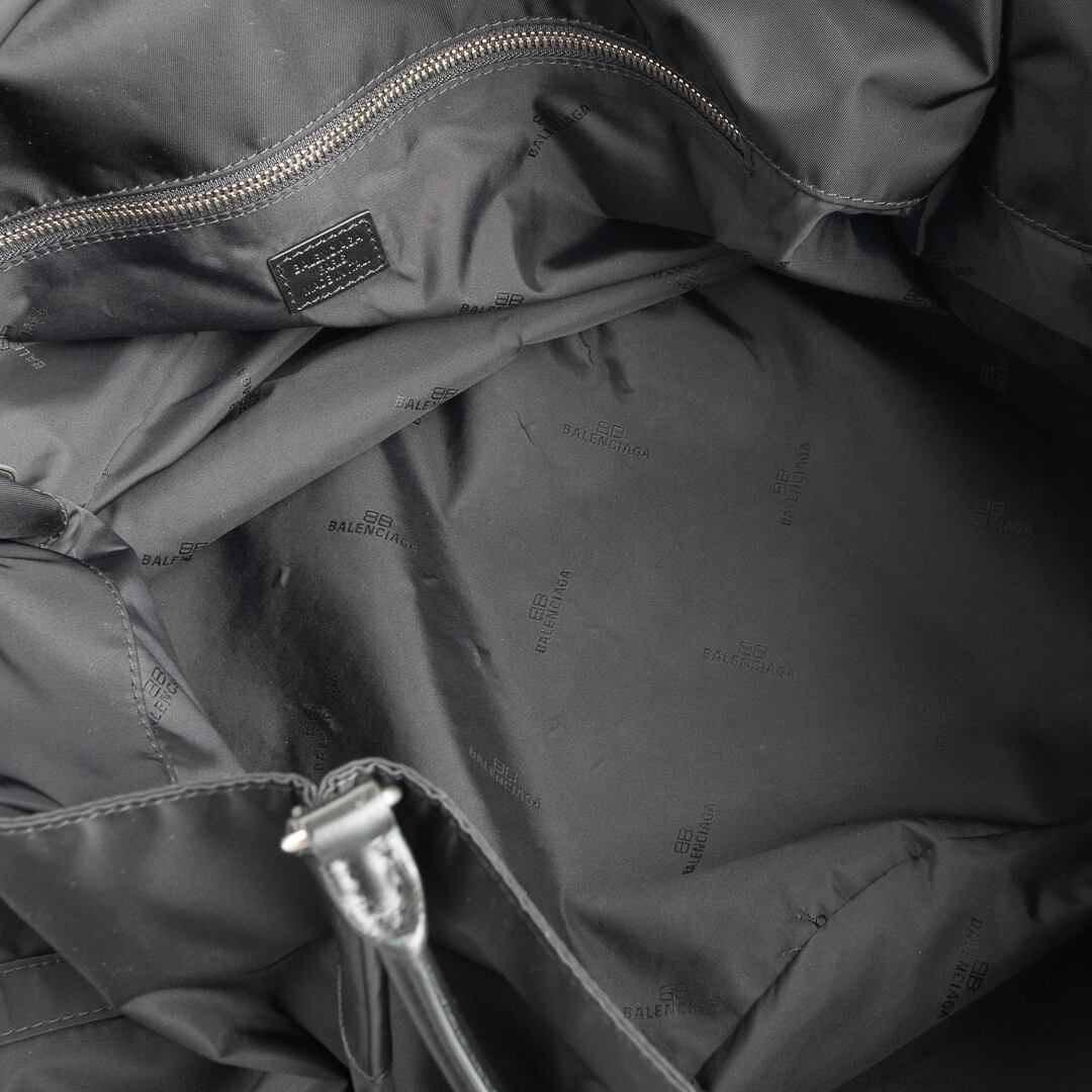 軽量で上質なナイロンに細身のレザーハンドルを組み合わせ、シンプルながらモダンな存在感を放ちます。さりげなくあしらわれたロゴもバレンシアガらしいアクセント。ゆったりとしたサイズ感でノートパソコンも楽に収まり、実用性も十分。日常使いからトラベルまで幅広いシーンで活躍してくれるバッグです。