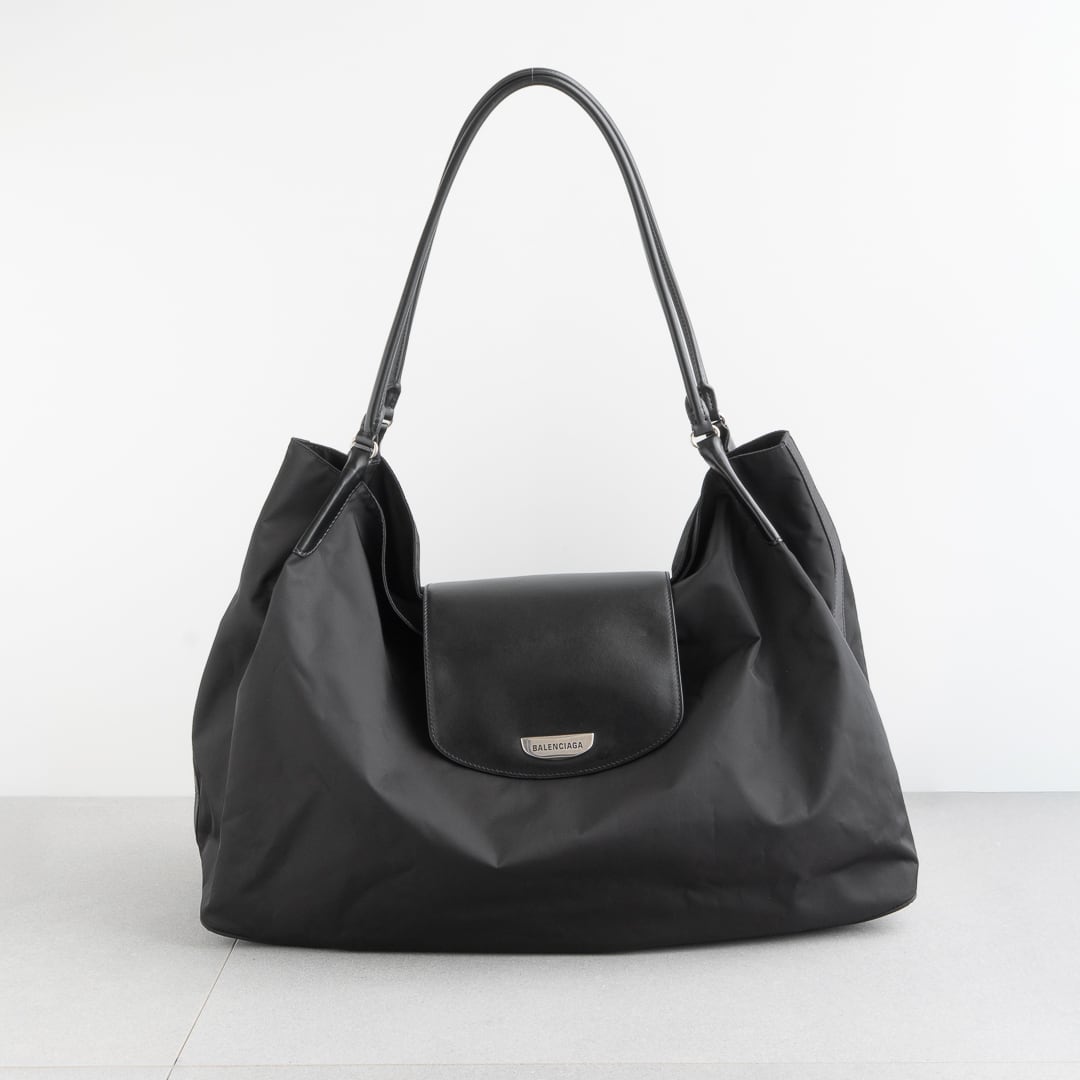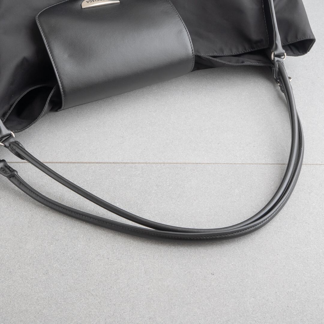 バレンシアガ ジュネーヴ ラージ ショルダーバッグ ブラック ナイロン レザー AW24