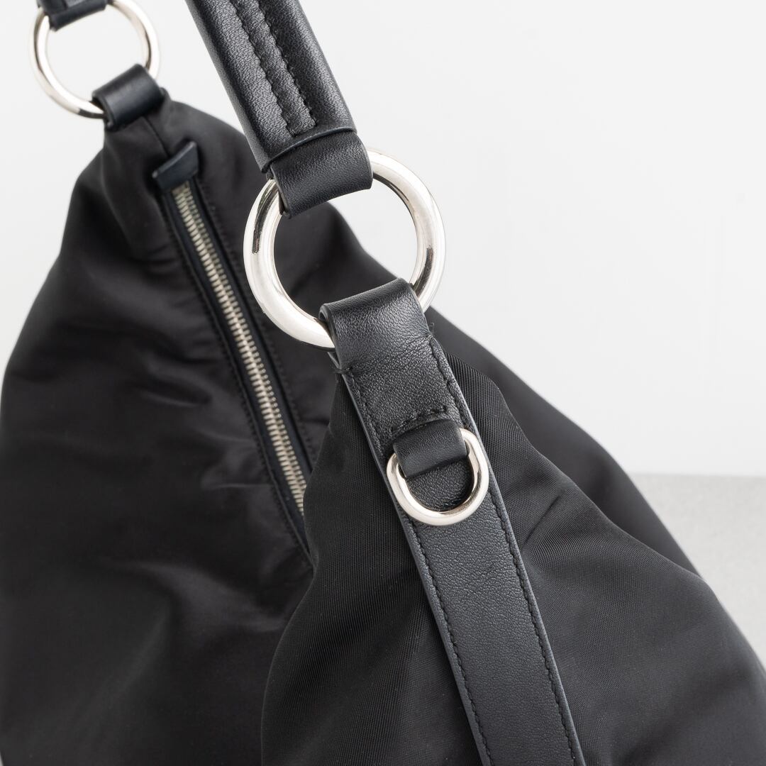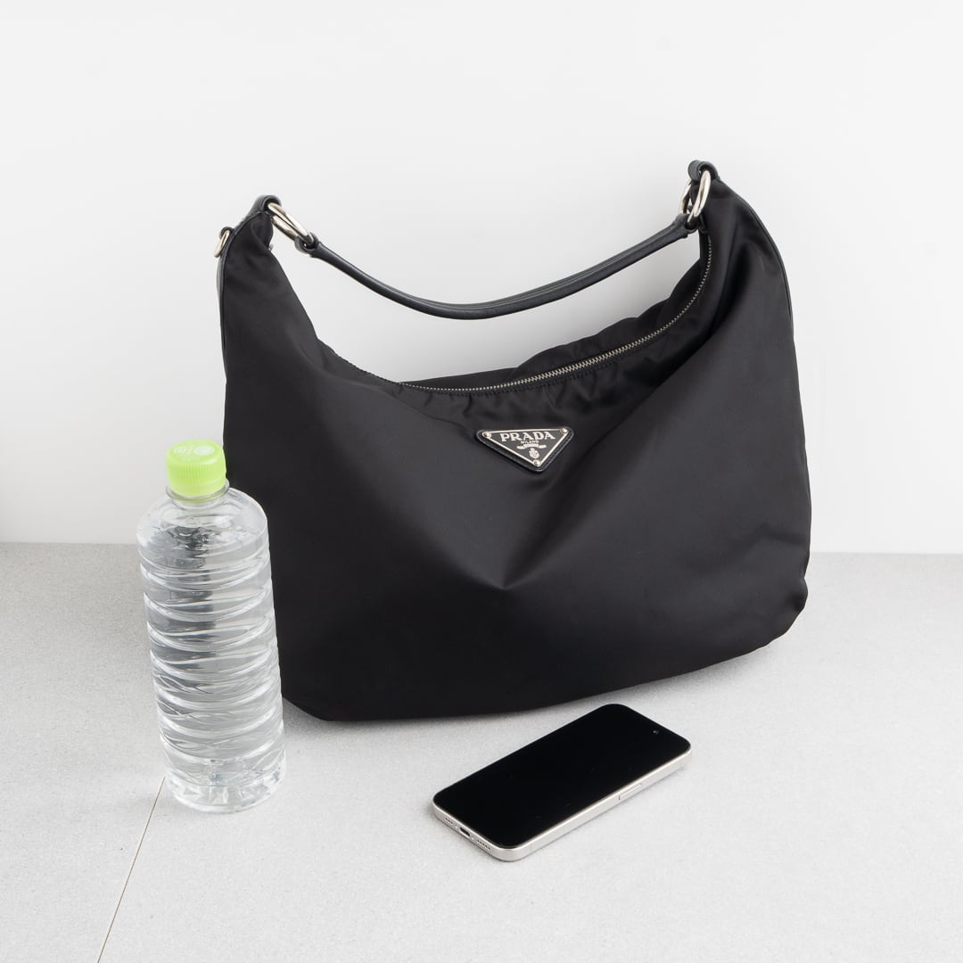上質なナイロンに、きめ細かでしなやかなレザーを合わせた、プラダらしい洗練されたデザイン。コンパクトなモデルが多いプラダのヴィンテージナイロンバッグの中でも、こちらはミディアムサイズで500mlペットボトルや11インチiPadもすっきり収納可能。デイリーからちょっとしたお出かけ、ビジネスシーンまで幅広いシーンで活躍するアイテムです。