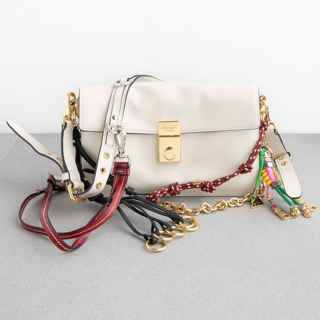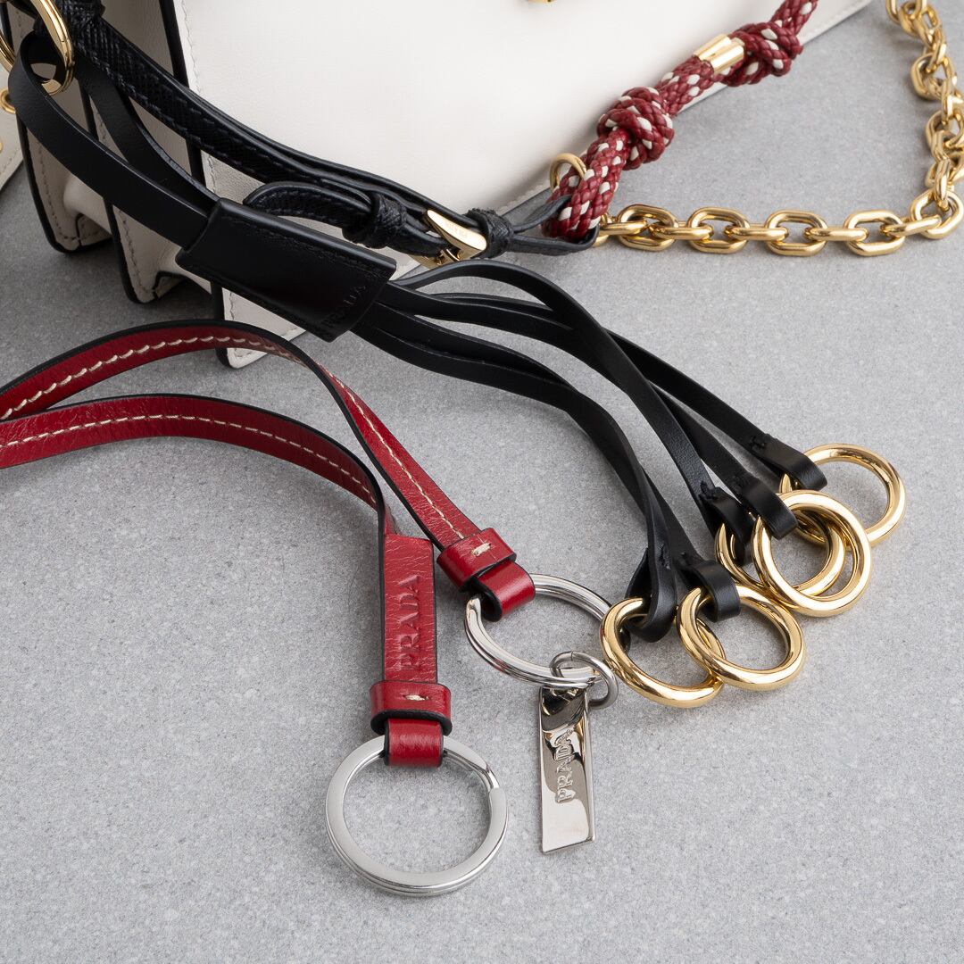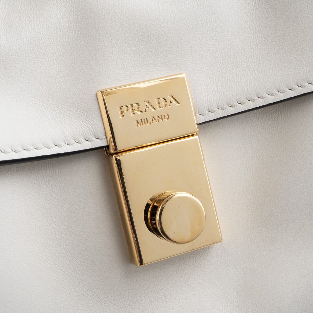 プラダ チャーム付 ソフトサウンド スモール ホワイト レザー AW25
