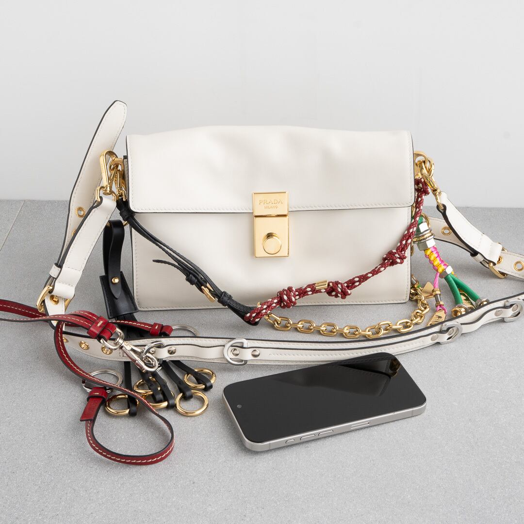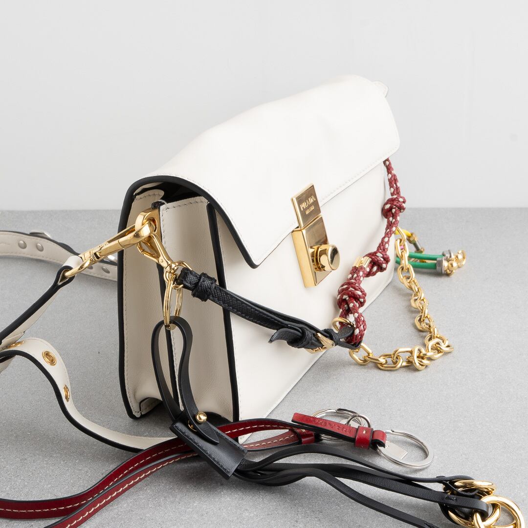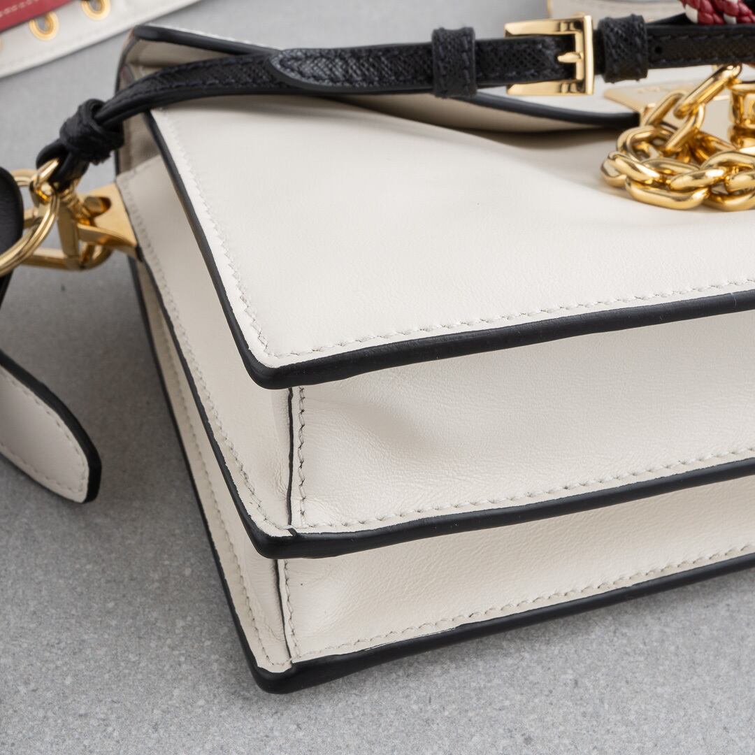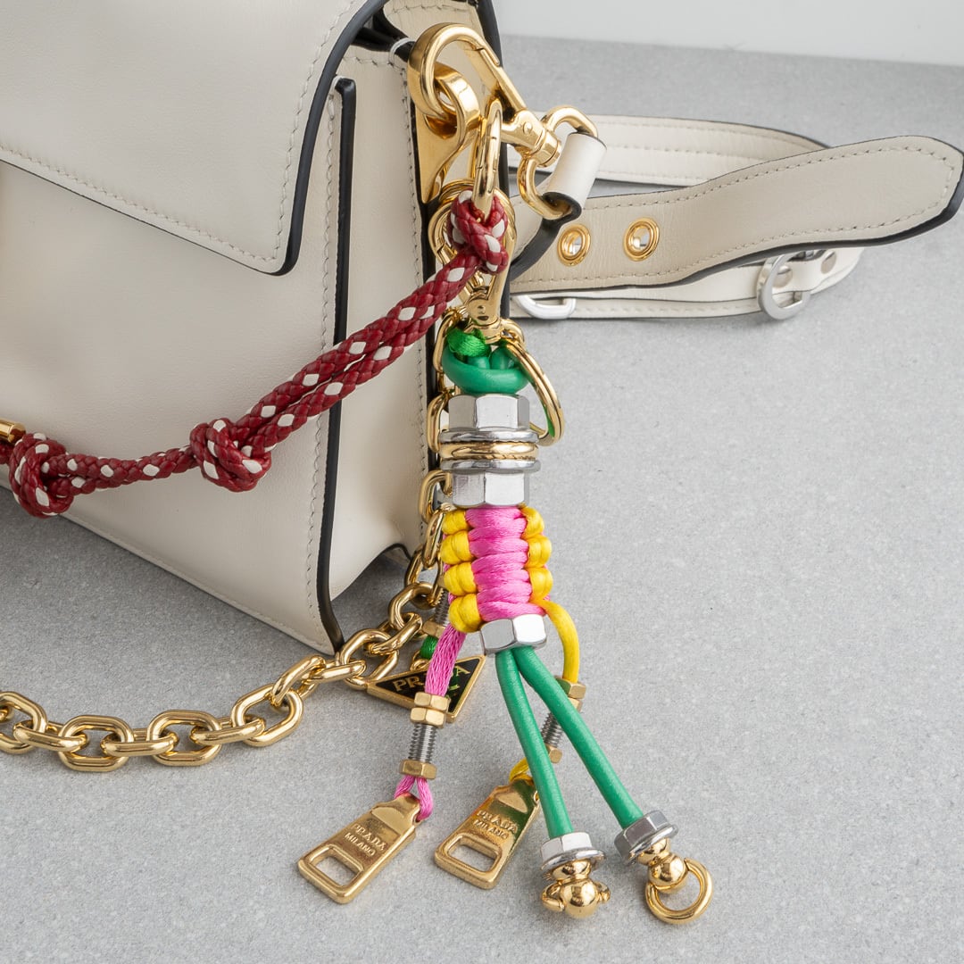 プラダ チャーム付 ソフトサウンド スモール ホワイト レザー AW25