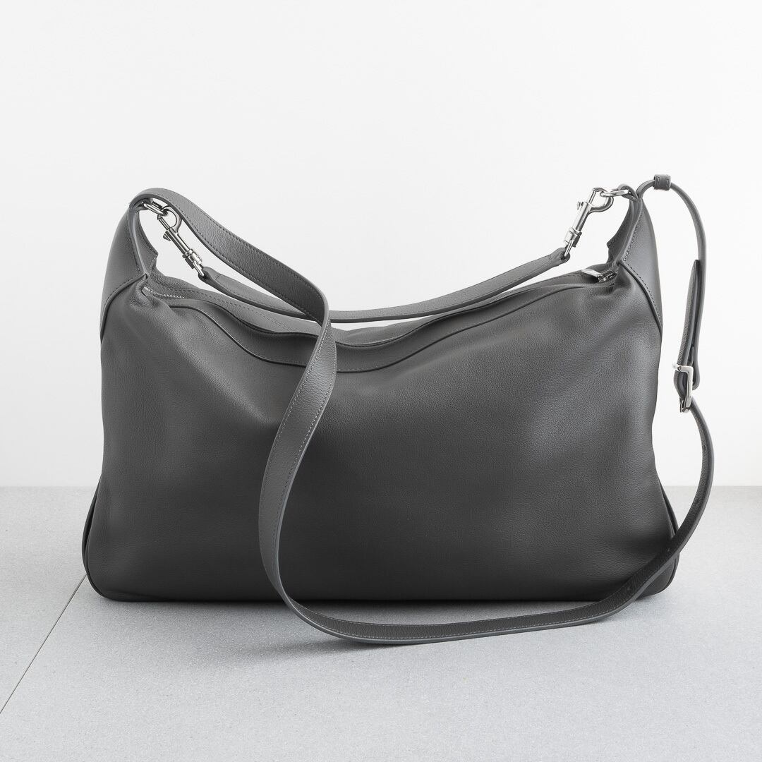 きめ細やかで柔らかなカーフレザーに、内装は上品なスエード。500mlペットボトルやiPadがゆったりと収納できるサイズ感です。シンプルで洗練されたデザインで、普段使いからビジネスまで幅広く活躍してくれるアイテムです。