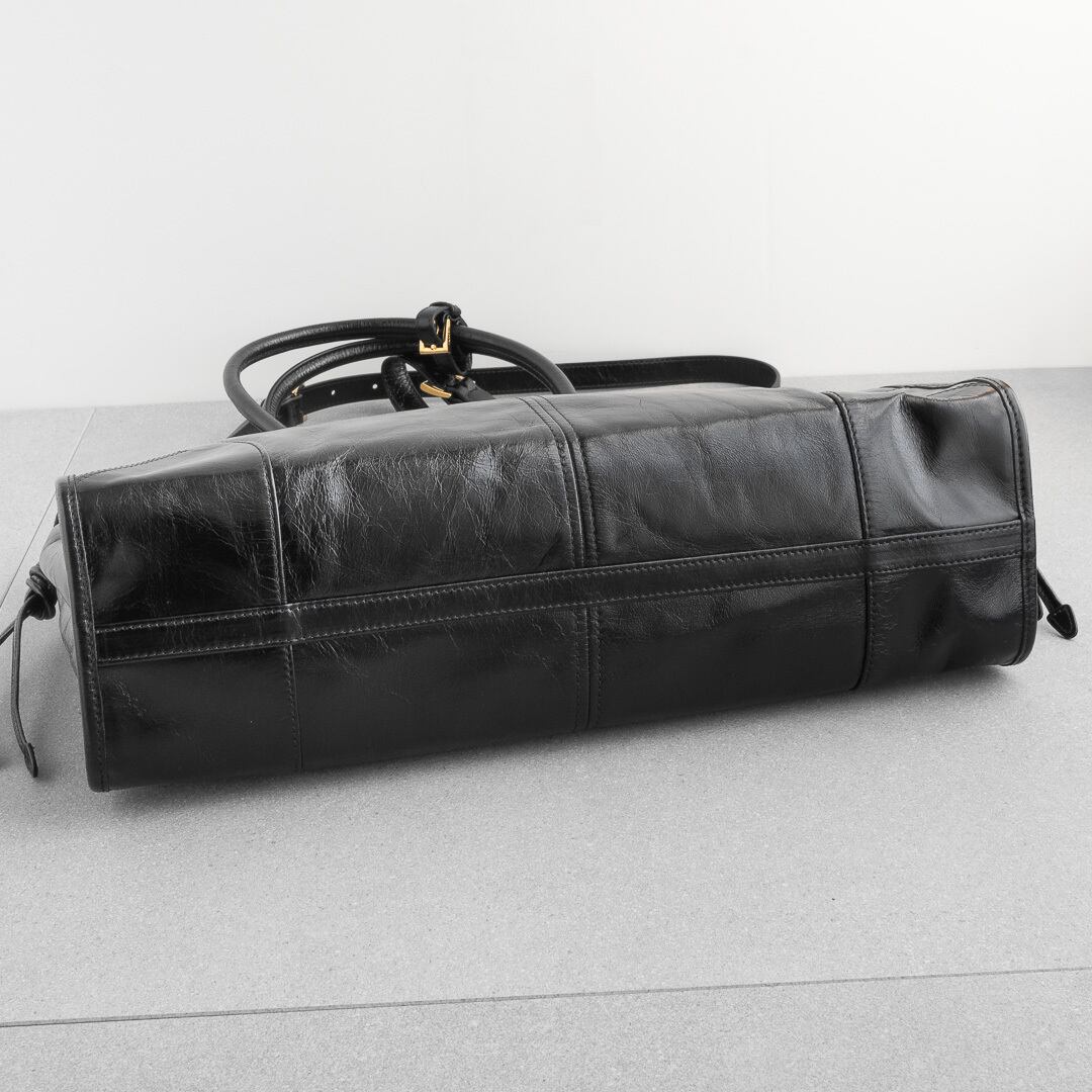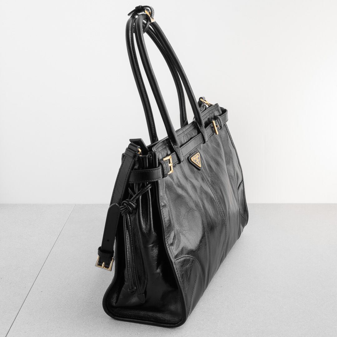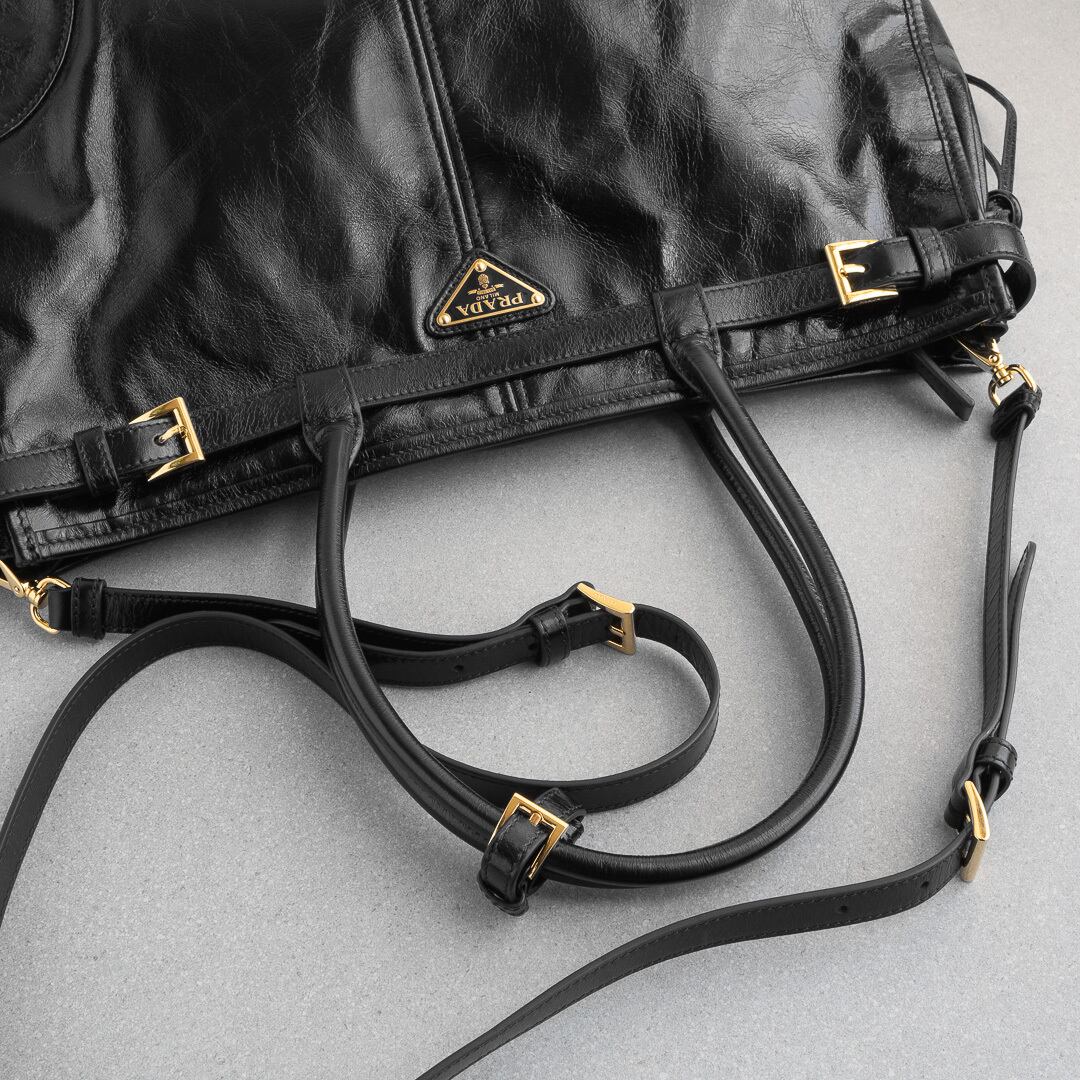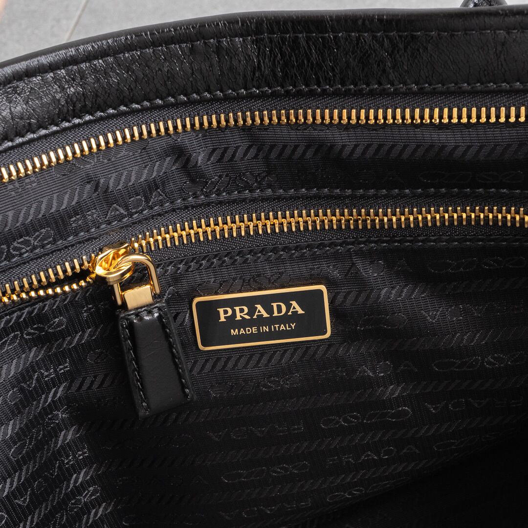 プラダ ボニー ラージ レザー ハンドバッグ ブラック レザー AW25