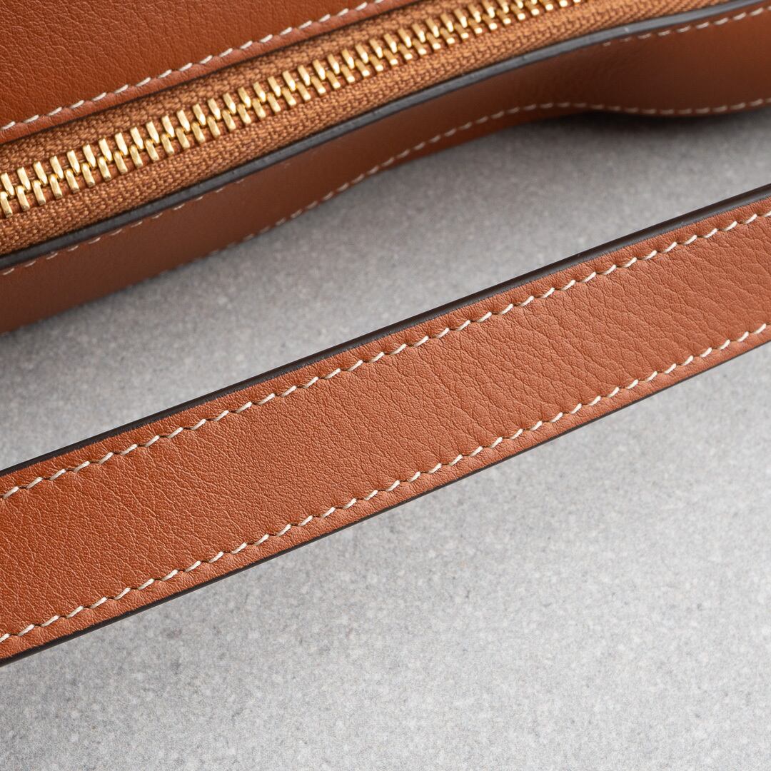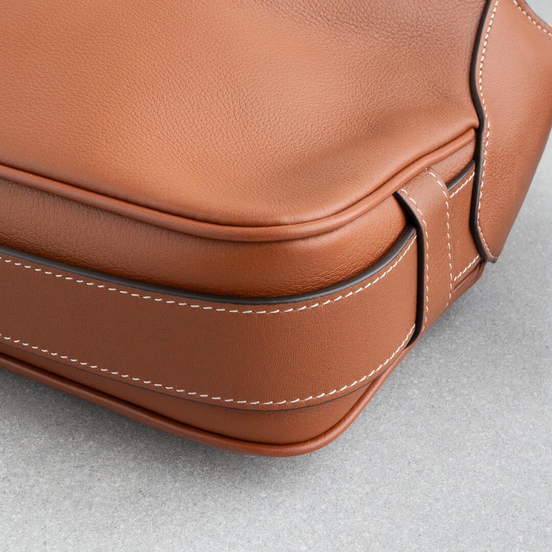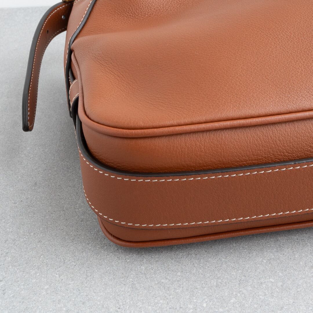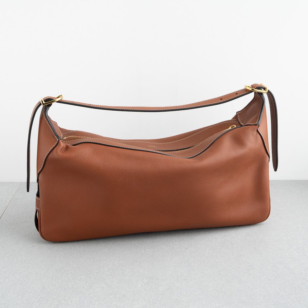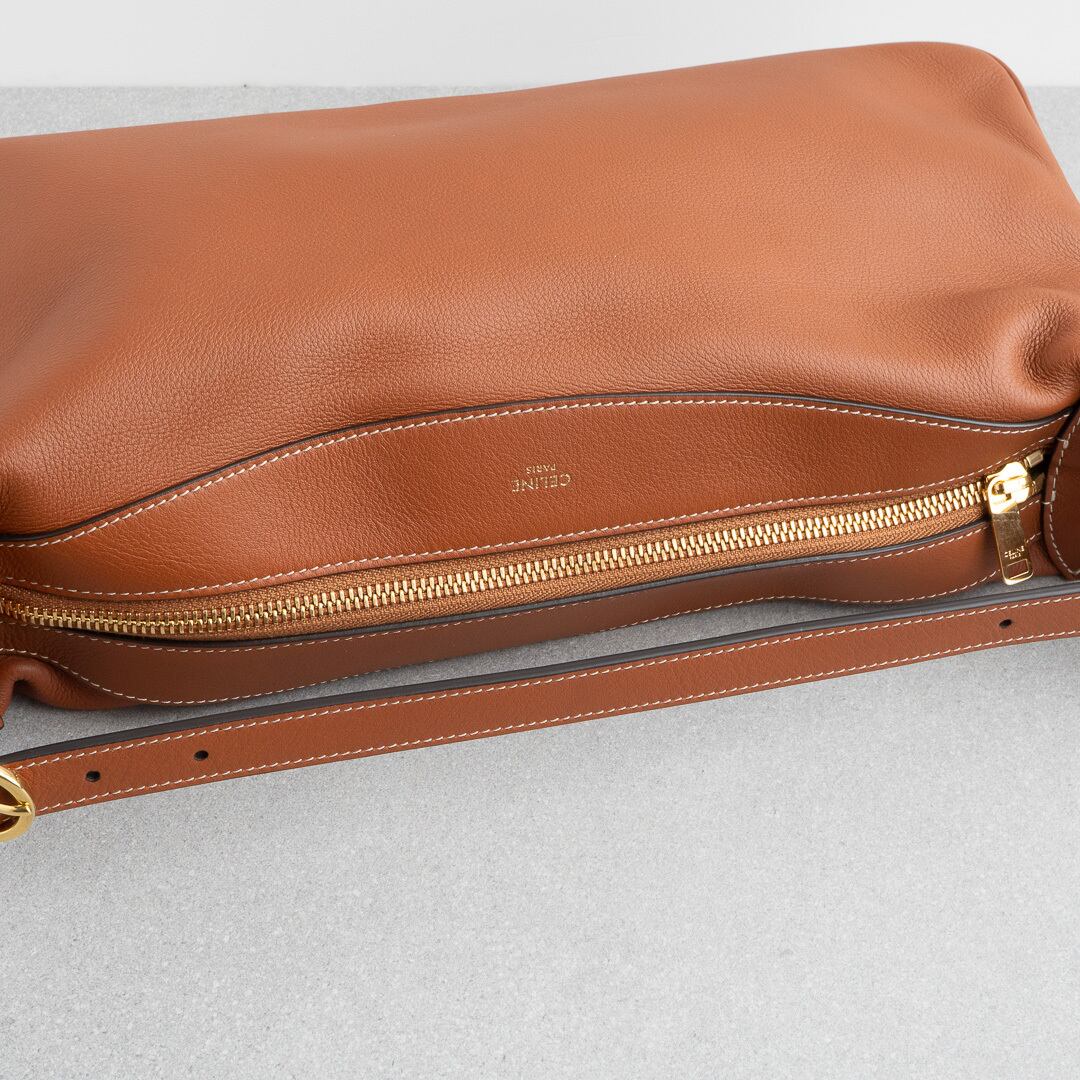 21年にデビューしたロミーは上品で洗練されたホーボバッグ。しなやかな手になじむレザーと、ミニマルなデザインがセリーヌらしい上品さを感じさせます。500mlのペットボトルや長財布がすっきり収まる、普段使いにちょうどいいサイズ感で、iPadは収納できません。シーンを問わず活躍してくれるアイテムです。
