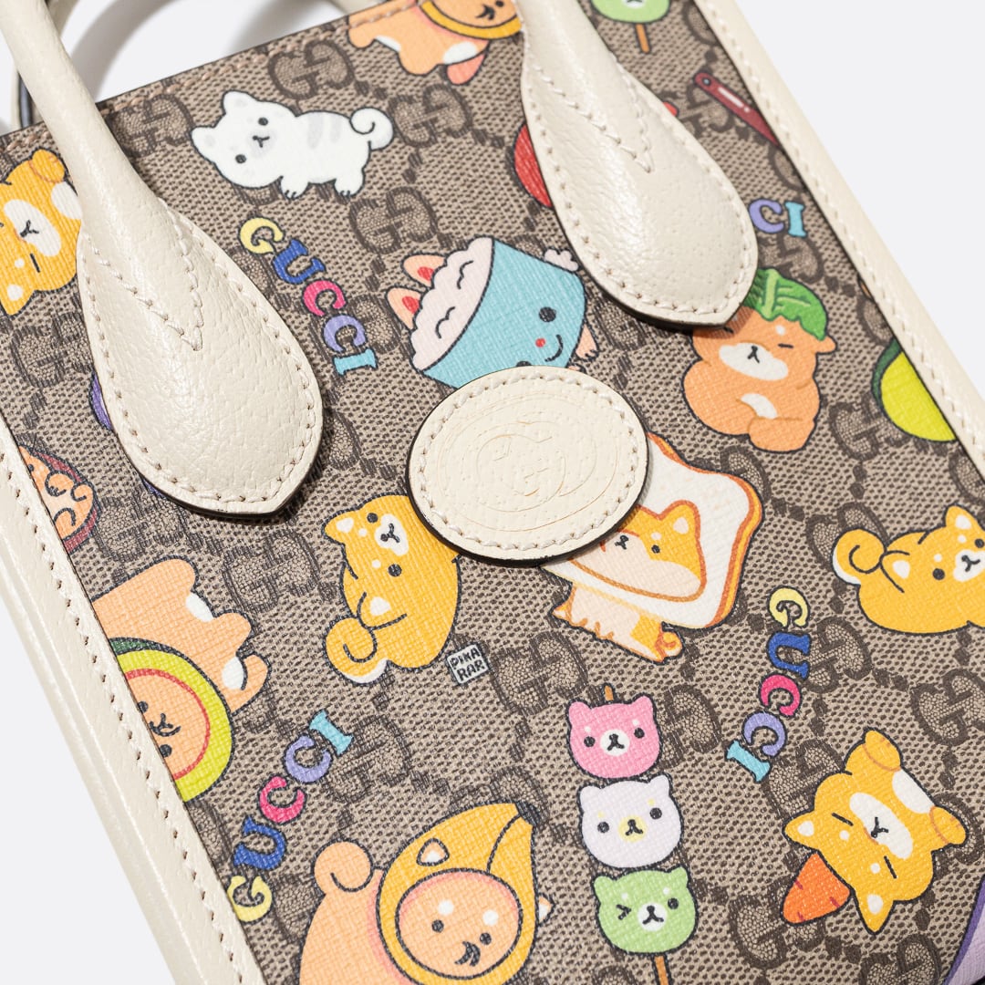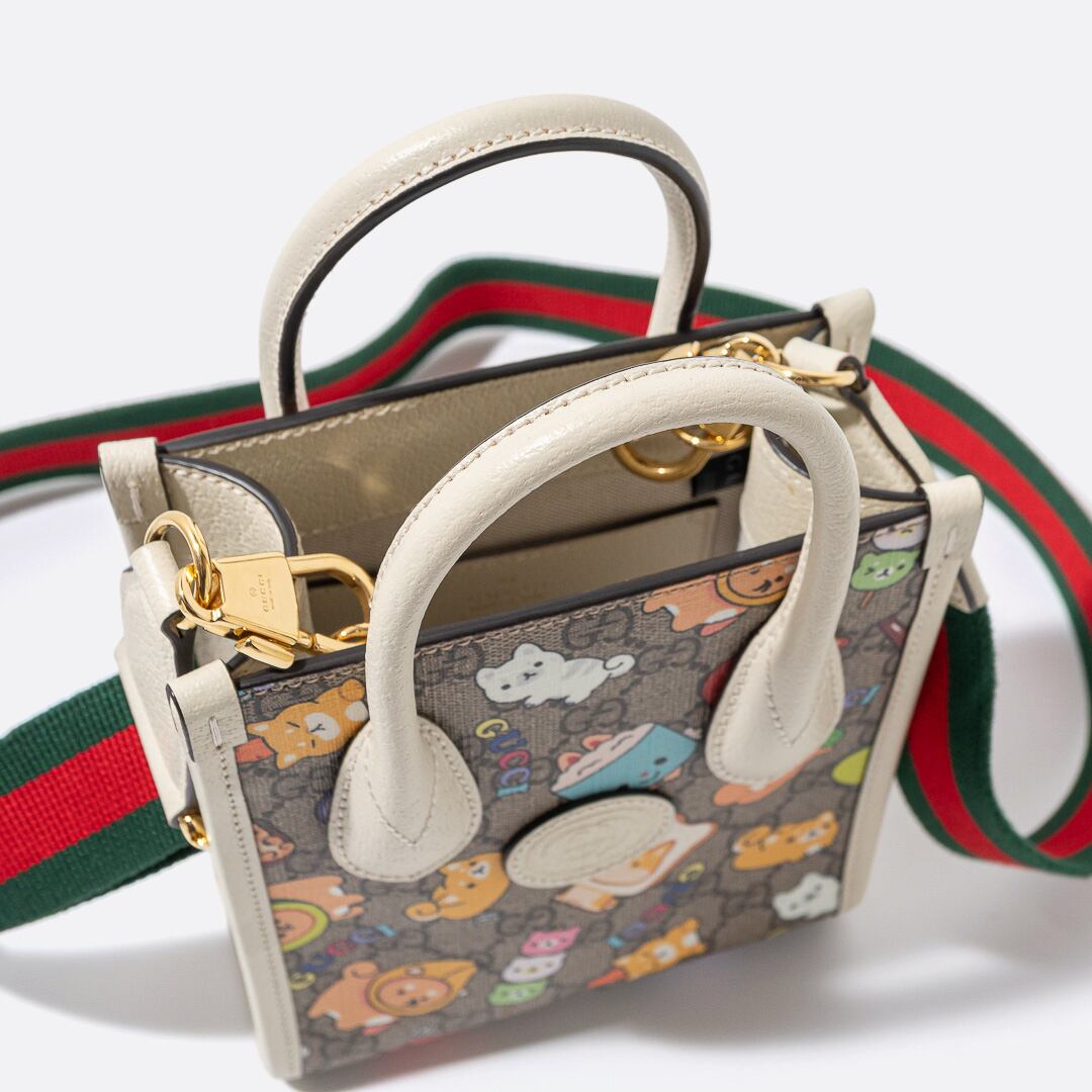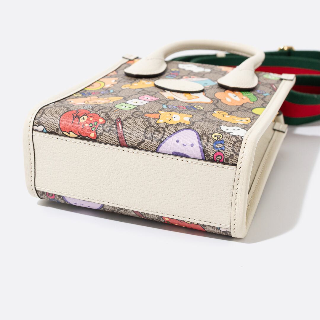 GUCCI x Pikarar アニマルプリント ミニ トートバッグ ホワイト