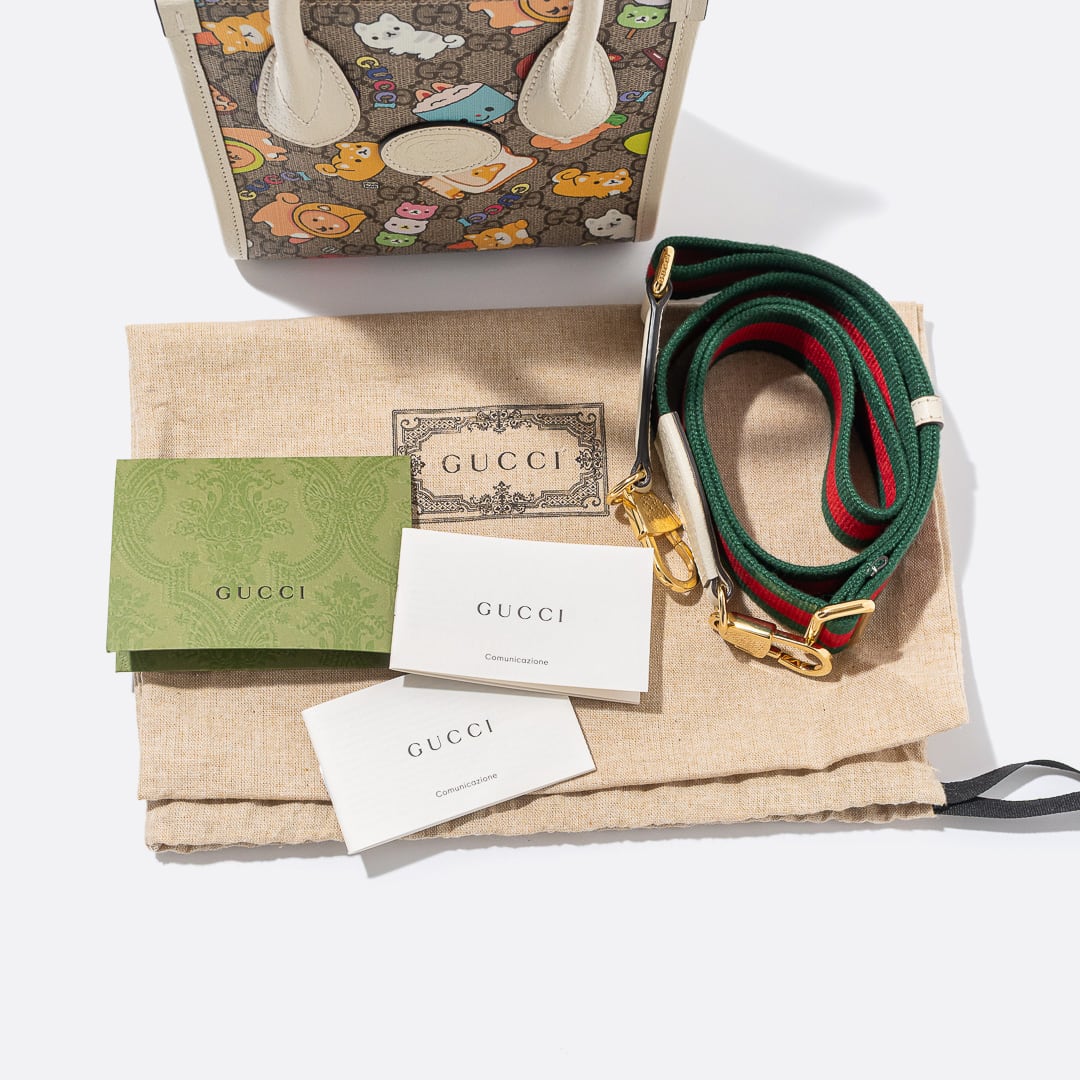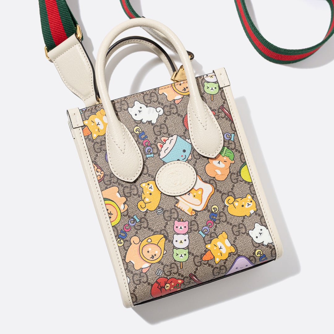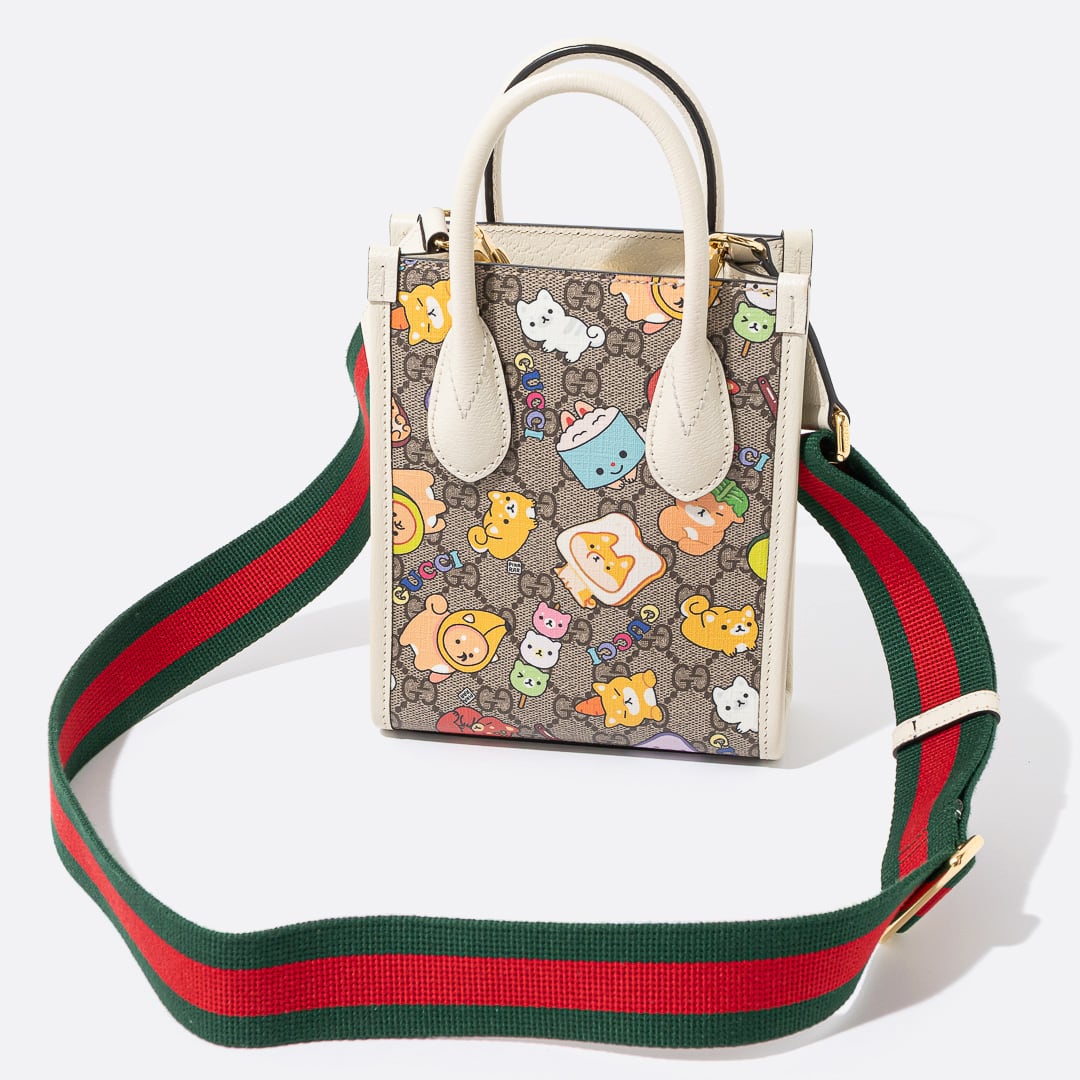 GUCCI x Pikarar アニマルプリント ミニ トートバッグ ホワイト