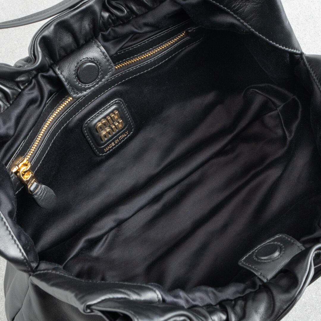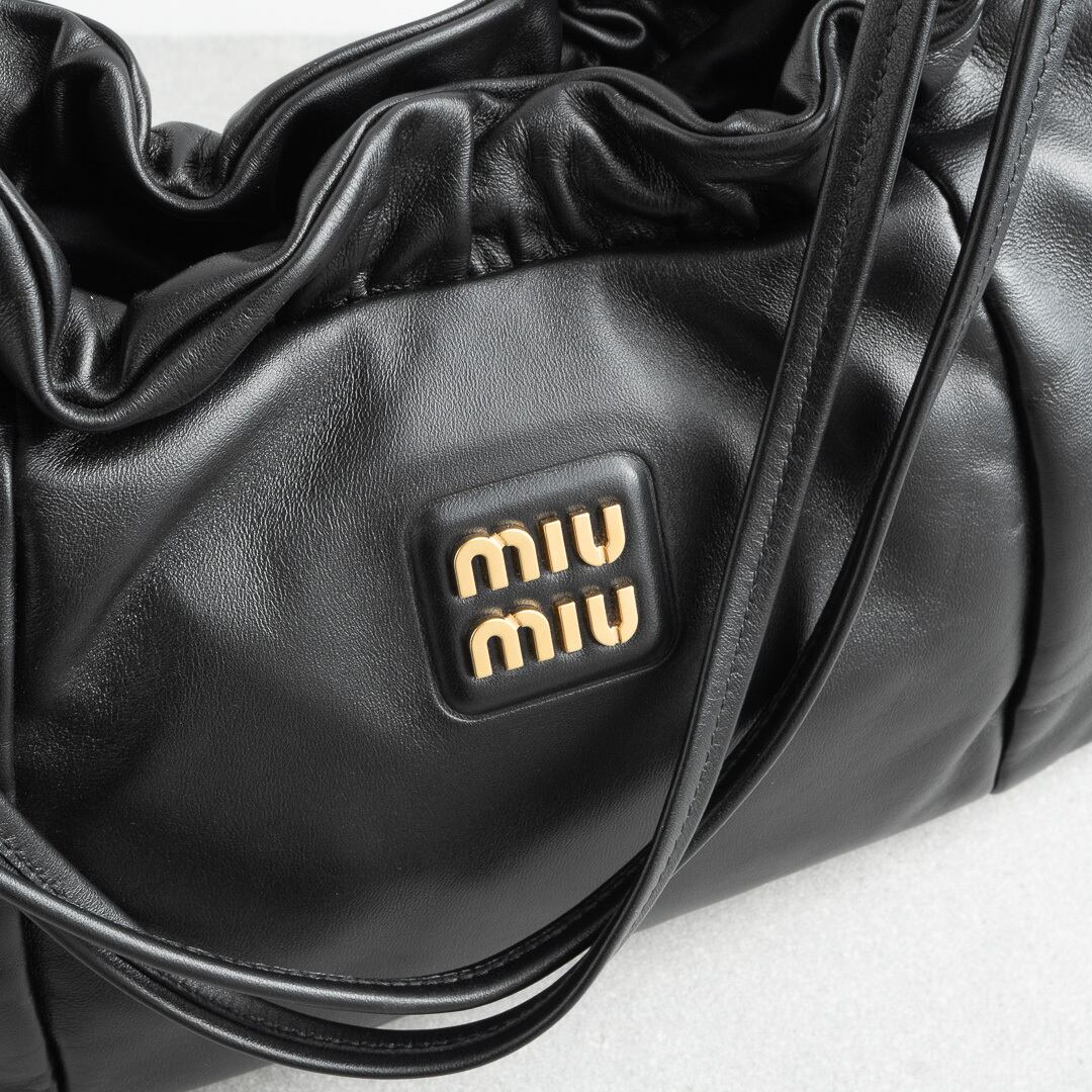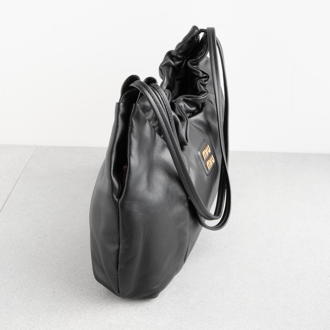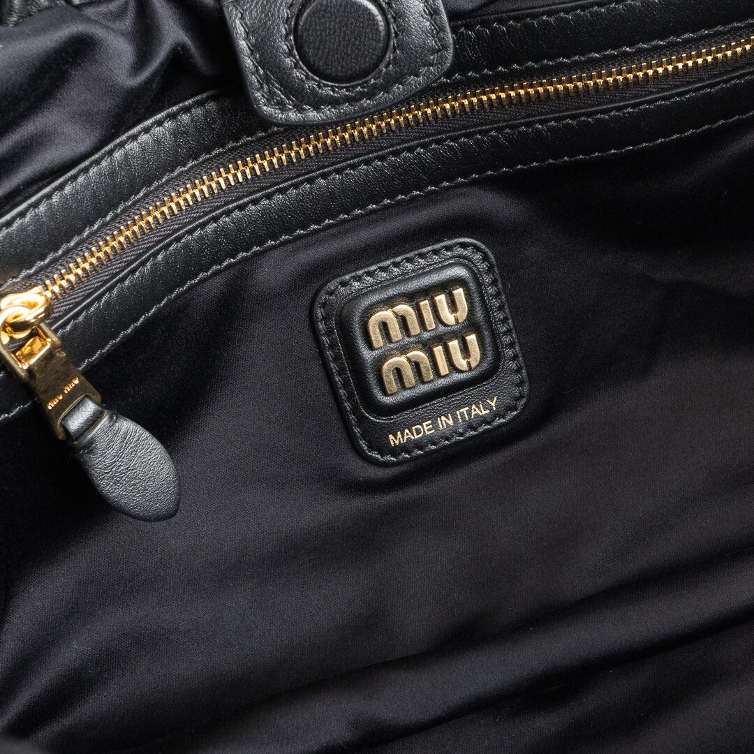 MIU MIU ロゴ入り ナッパレザー ホーボーバッグ ブラック